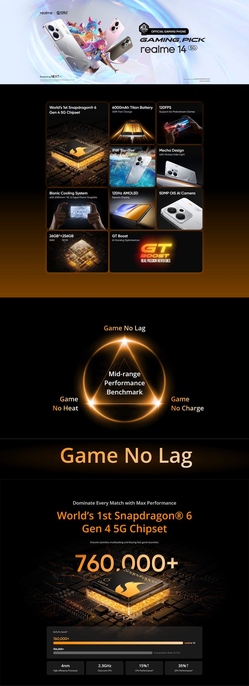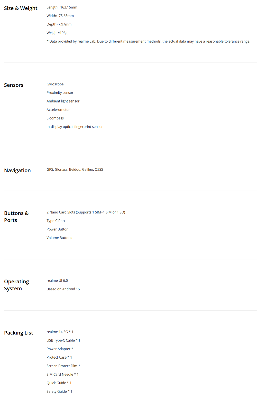 realme 14 5G 12GB+256GB | 6.67 inch | 50MP Main Camera | Qualcomm Snapdragon 6 Gen 4 (4 nm) | 6000mAh, 45W Fast Charge