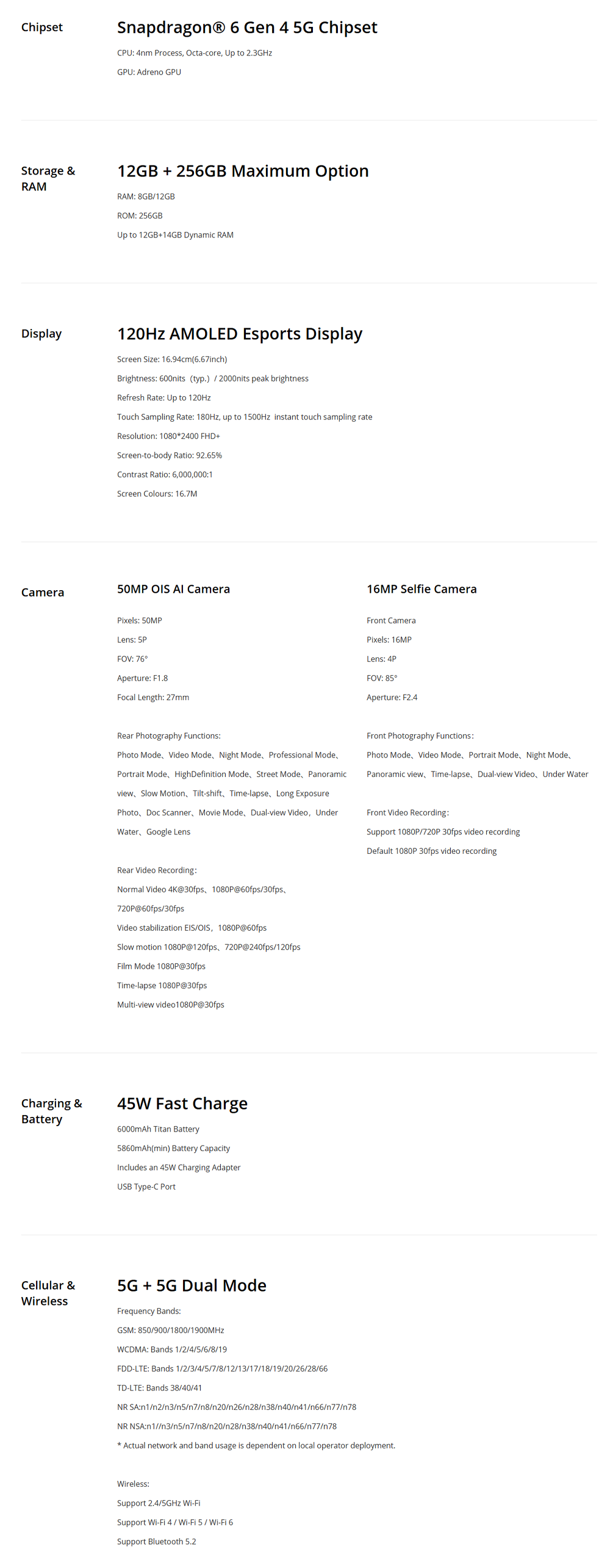 ▪ Battery Capacity(mAh): 6000mAh, 45W Fast Charge