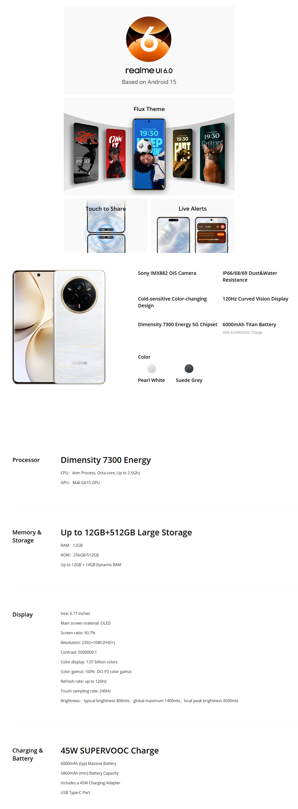 realme 14 Pro 5G 12GB+256GB/12GB+512GB | 6.77 inch | 50MP Rear Camera | Mediatek Dimensity 7300 Energy (4 nm) | 6000mAh, 45W Fast Charge