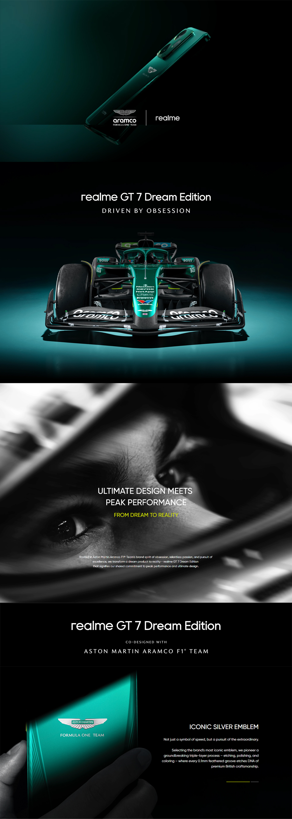 realme GT 7 Dream Edition 16GB+512GB | 6.78 inches, LTPO AMOLED | 50MP Main Camera | Mediatek Dimensity 9400e (4 nm) | Android 15, Realme UI 6.0 | Li-Po 7000mAh, 120W wired