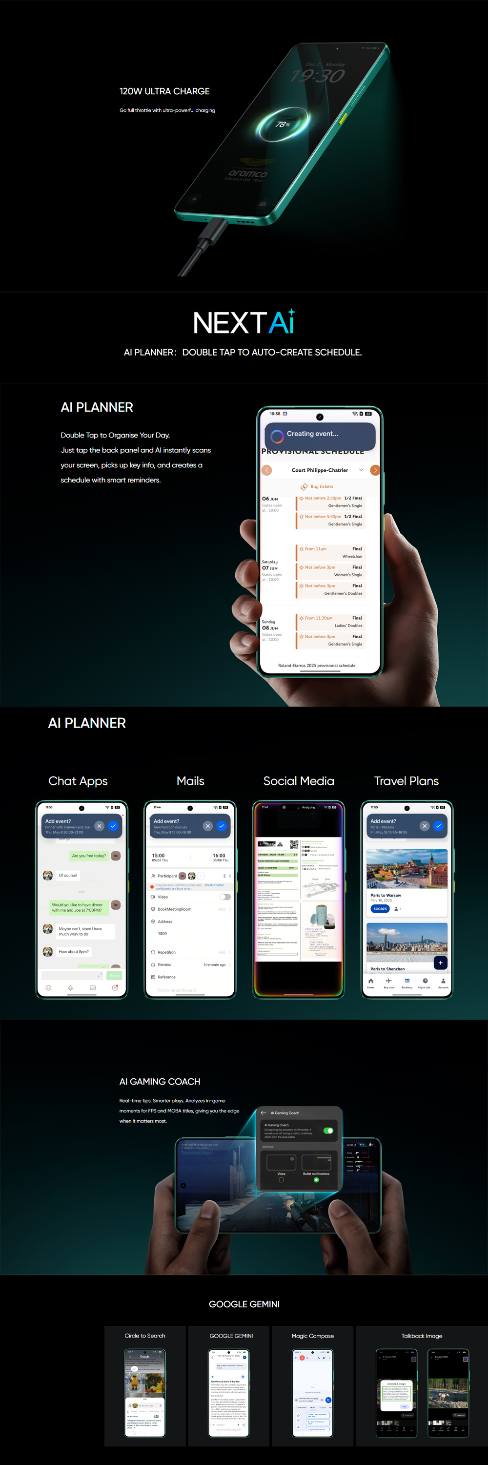 ▪ Battery Capacity(mAh): Li-Po 7000mAh, 120W wired