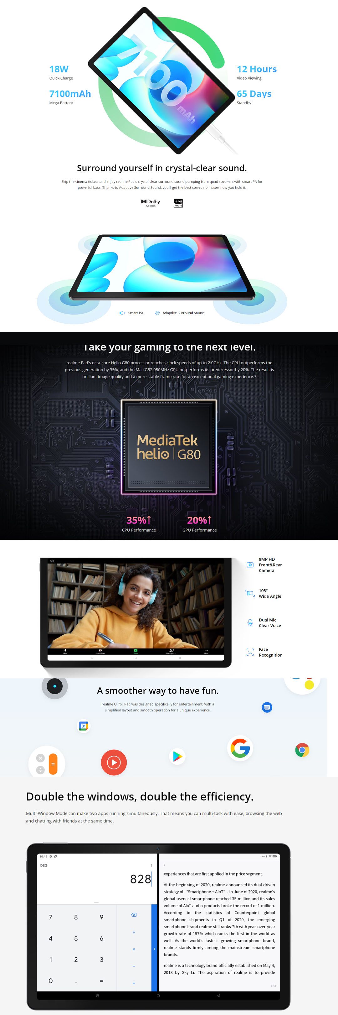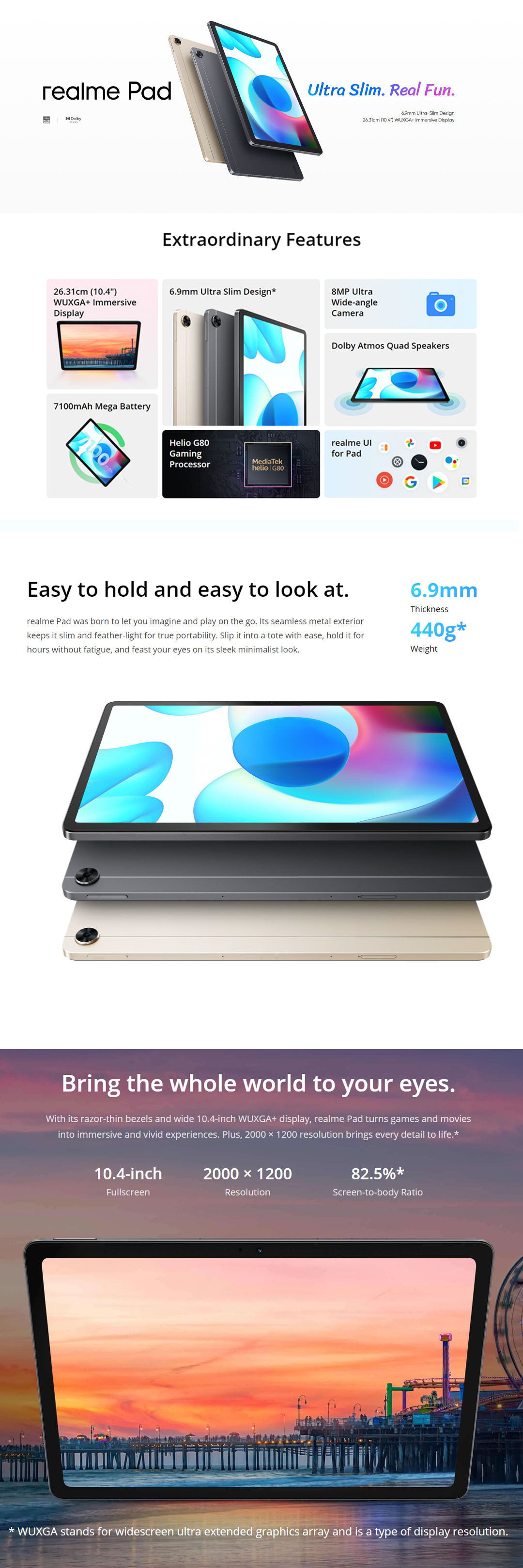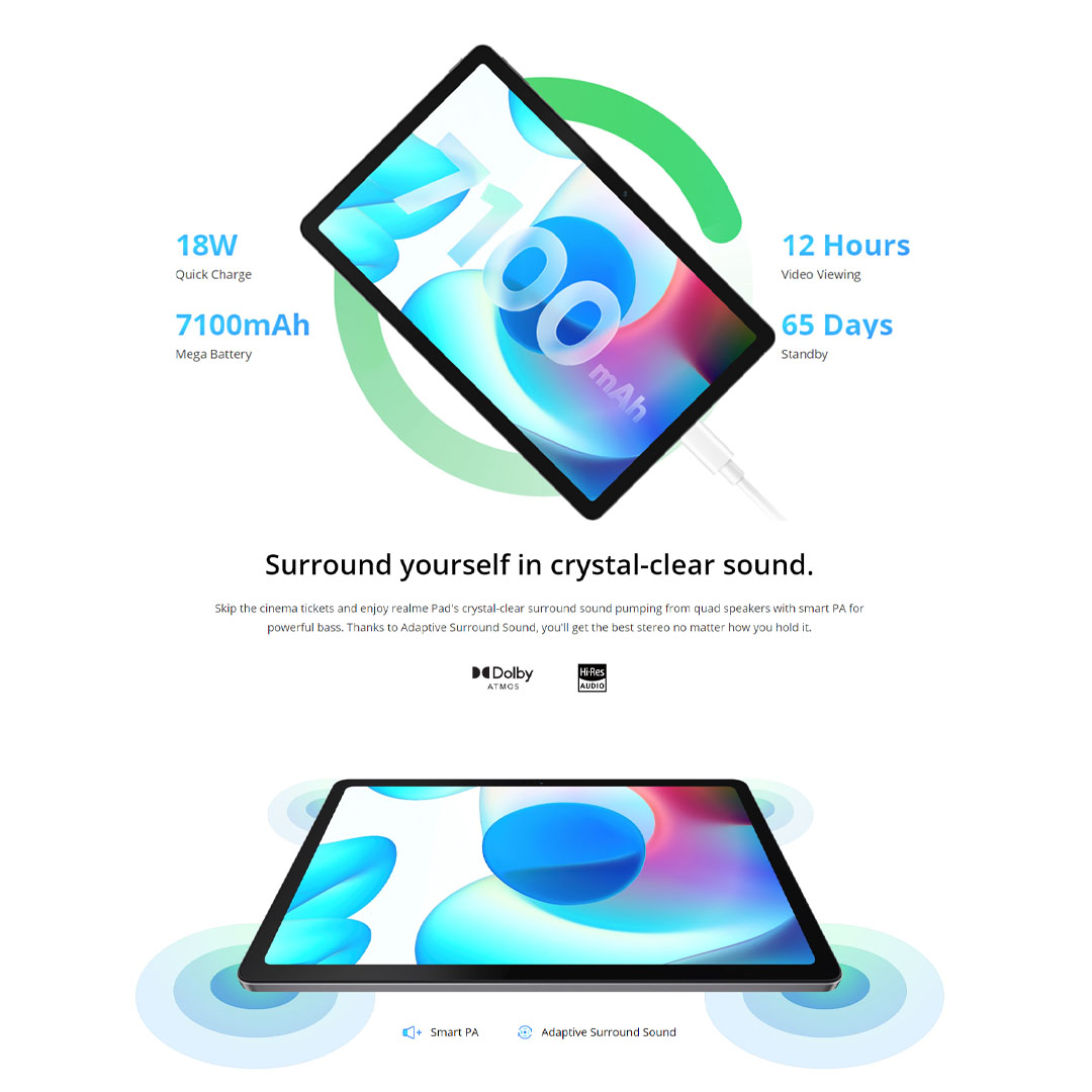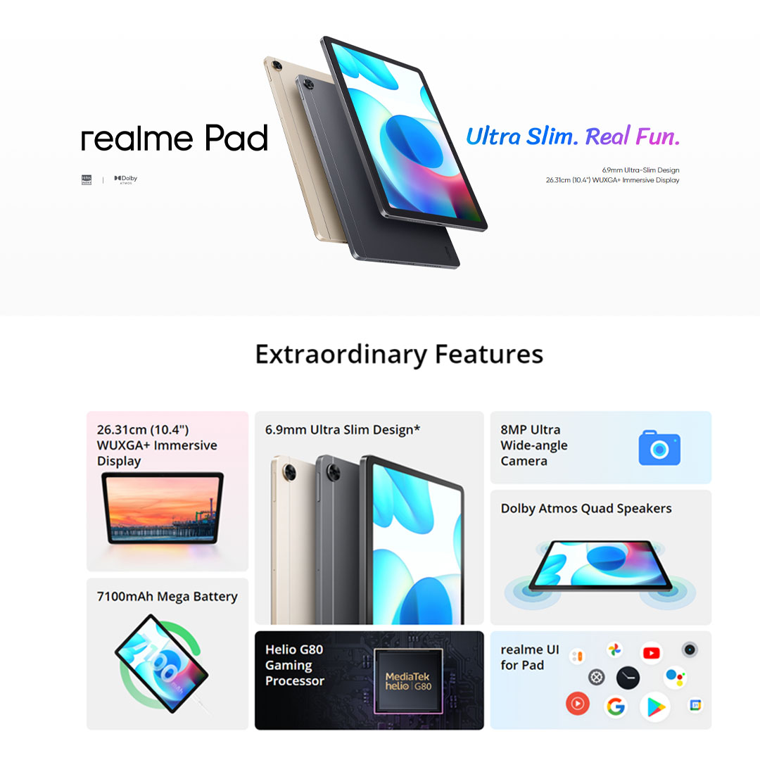 realme Pad 10.4" | 6GB+128GB / 4GB+64GB | 7100mAh Mega Battery | Dolby Atmos Quad Speakers | Helio G80GamingProcessor | Tablet with 1 Year Warranty