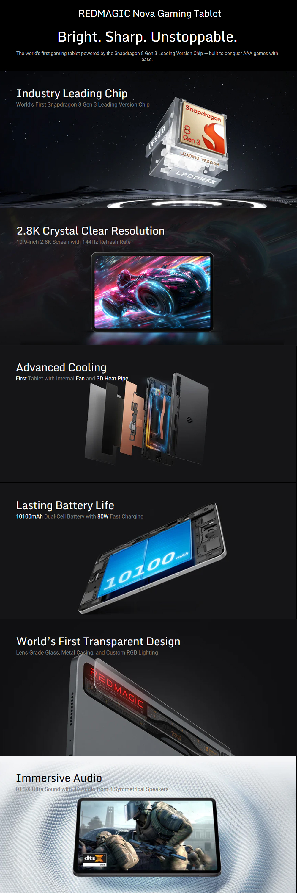 REDMAGIC Nova Gaming Tablet 12GB+256GB/ 16GB+512GB | Android 14 | Snapdragon 8 Gen 3 | 10100mAh Dual-Cell Battery