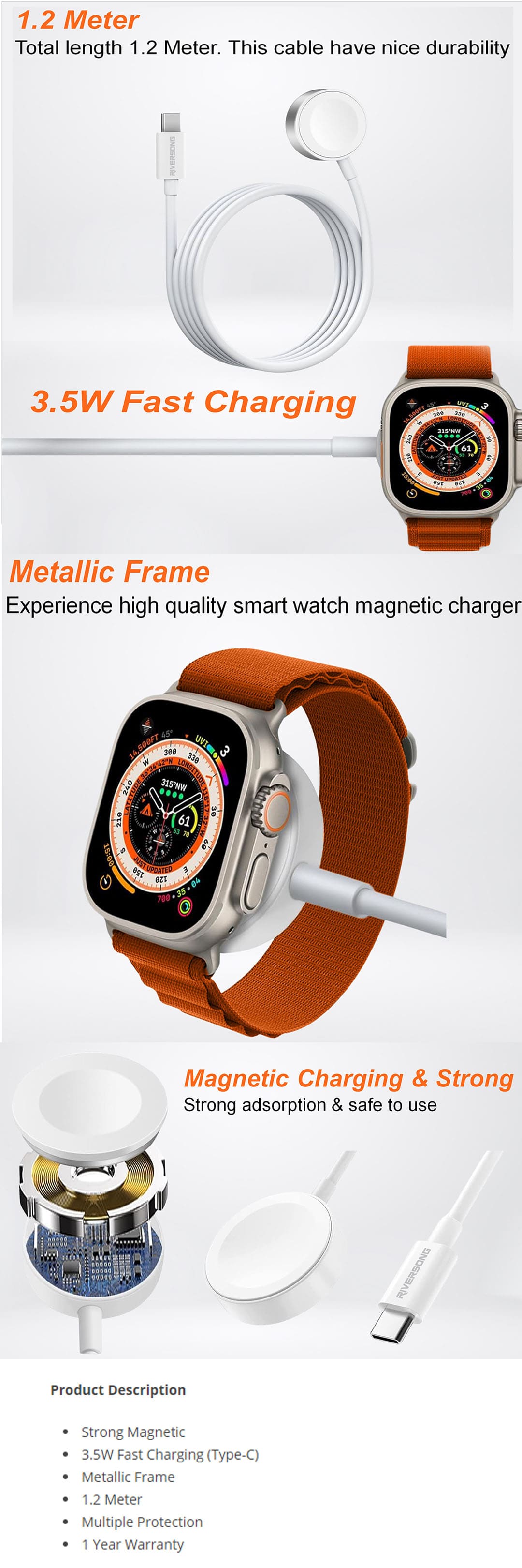 RIVERSONG 1.2m Mag Pro Charging AD78 | 3.5W Fast Charging Type-C | Strong Magnetic | Metallic Frame | Charging with 1 Year Warranty