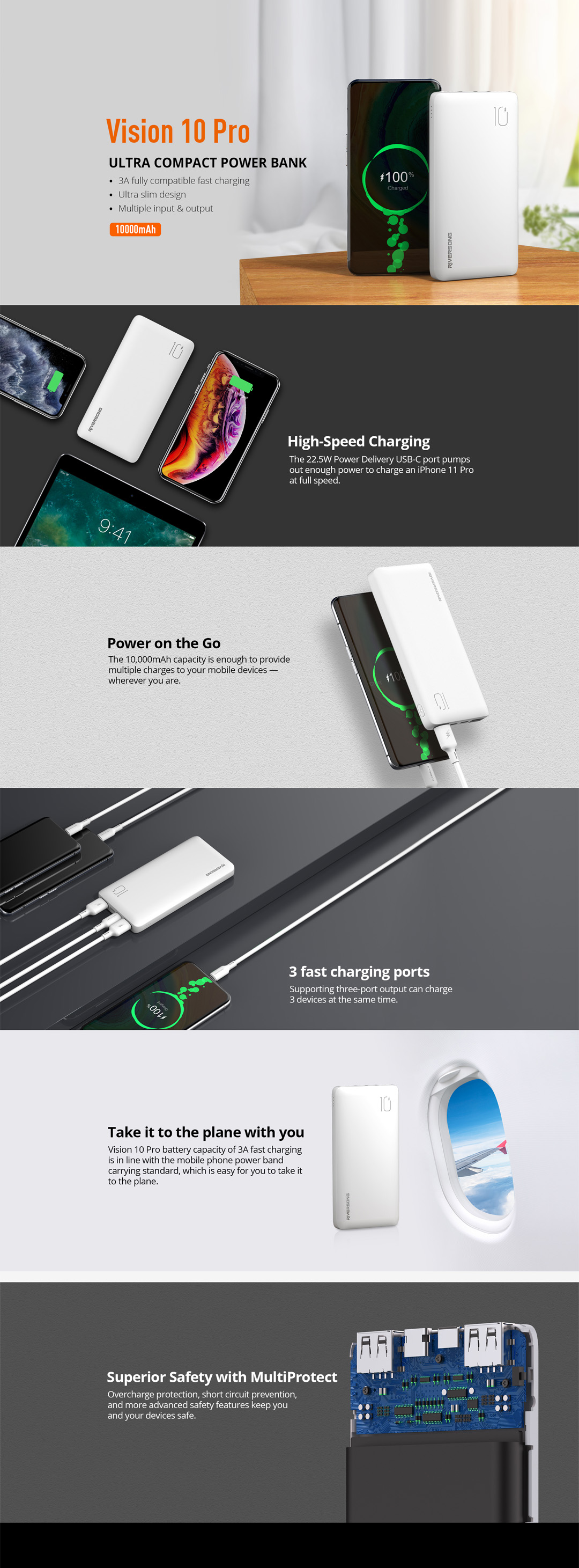 RIVERSONG 10000mAh Vision 10 Pro Ultra Compact Power Bank PB68 Pro | 3A Fully Compatible Fast Charging | 22.5W High Speed | Power Bank with 1 Year Warranty