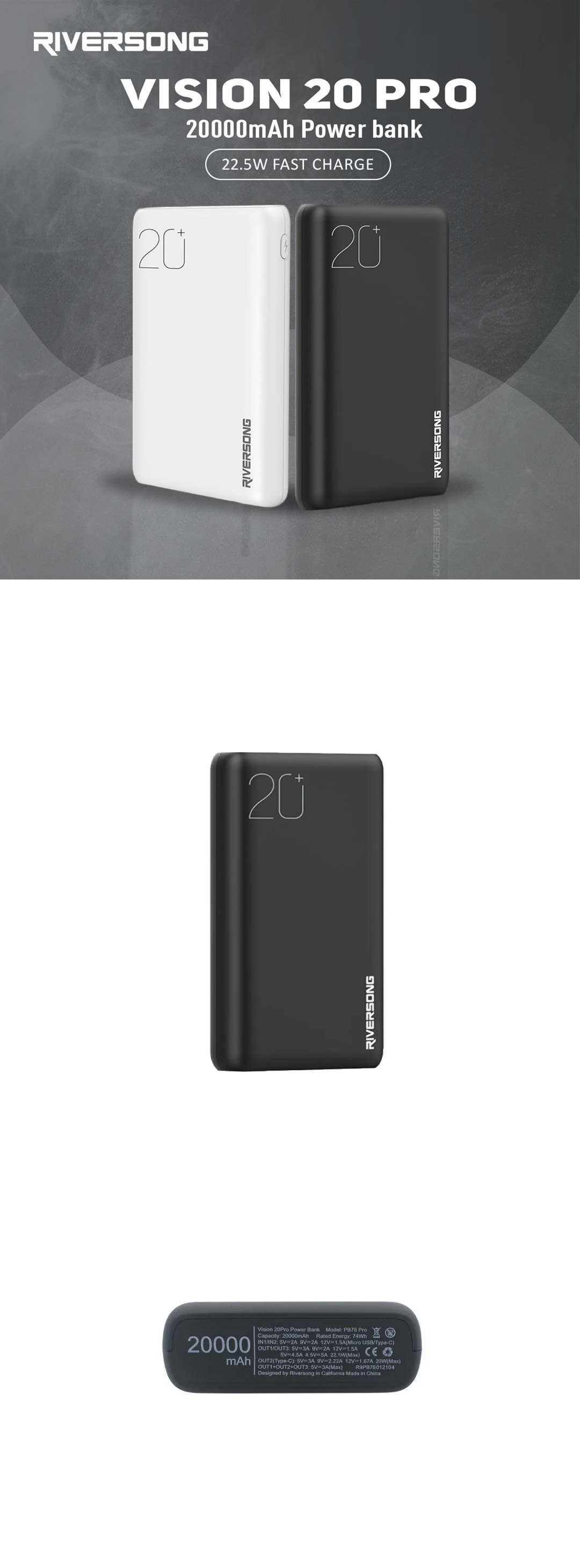 RIVERSONG 20000mAh Vision 20 Pro Power Bank PB76 Pro | 22.5w Quick Charge | Dual USB Output | Type C Input & Output | Power Bank with 1 Year Warranty