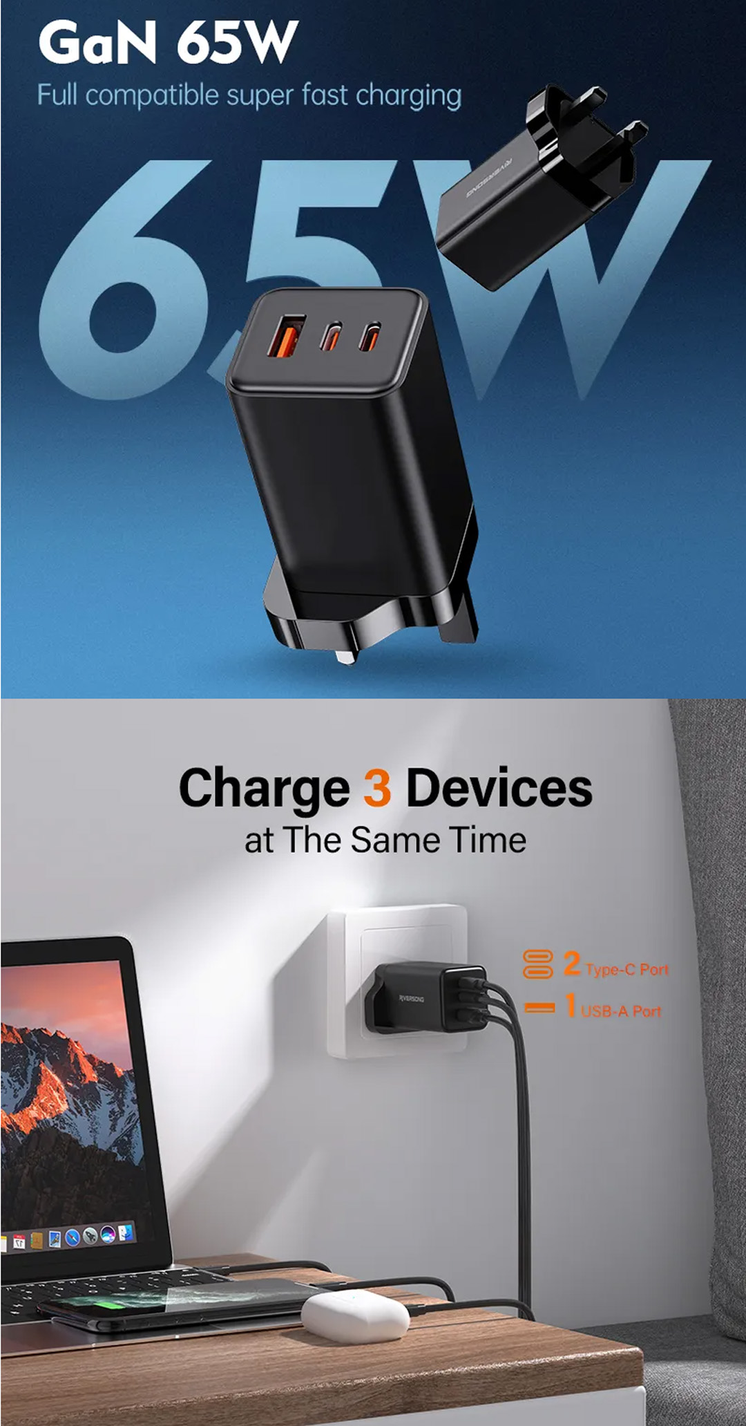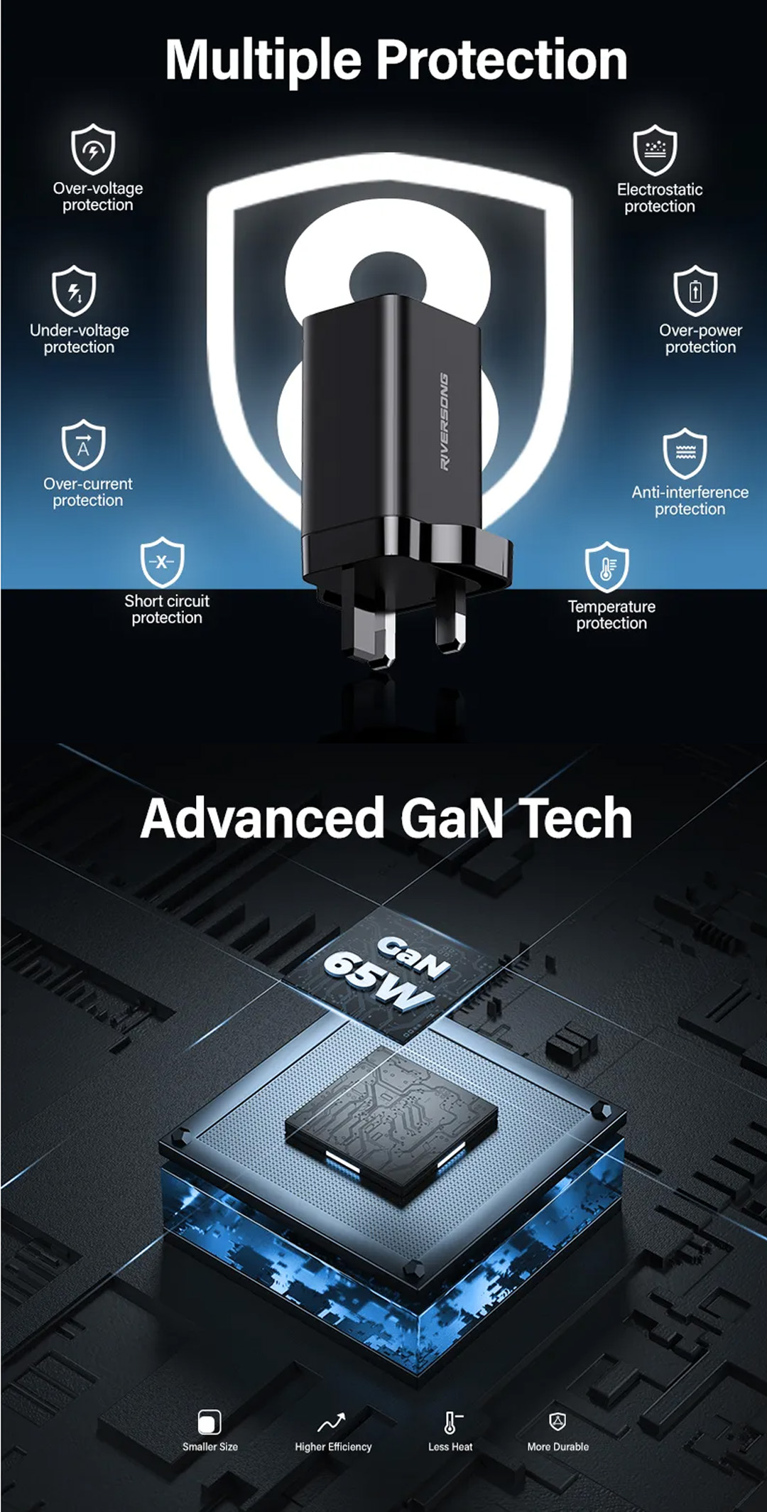 RIVERSONG 65W PowerKub G65 GaN5 Super Fast Charging Wall Charger Adapter AD102 | Advance Gan Tech | Multiple Protection | Adapter with 1 Year warranty