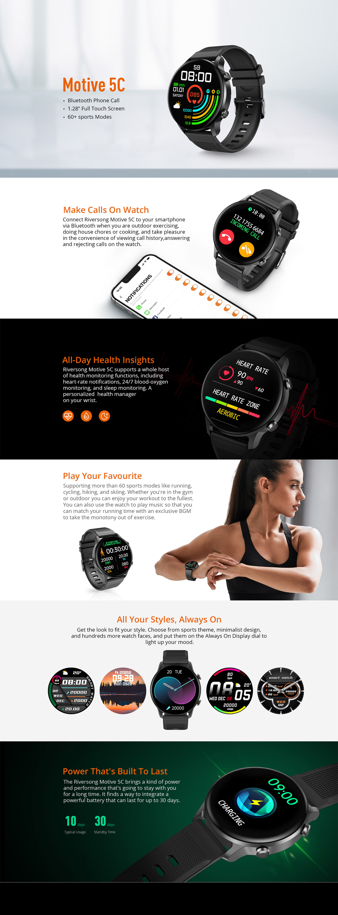 RIVERSONG Motive 5C Smartwatch | 1.28" Full Touch Screen | Bluetooth Calling | 60+ Sports Modes | Health Monitoring | Smart Watch with 1 Year Warranty