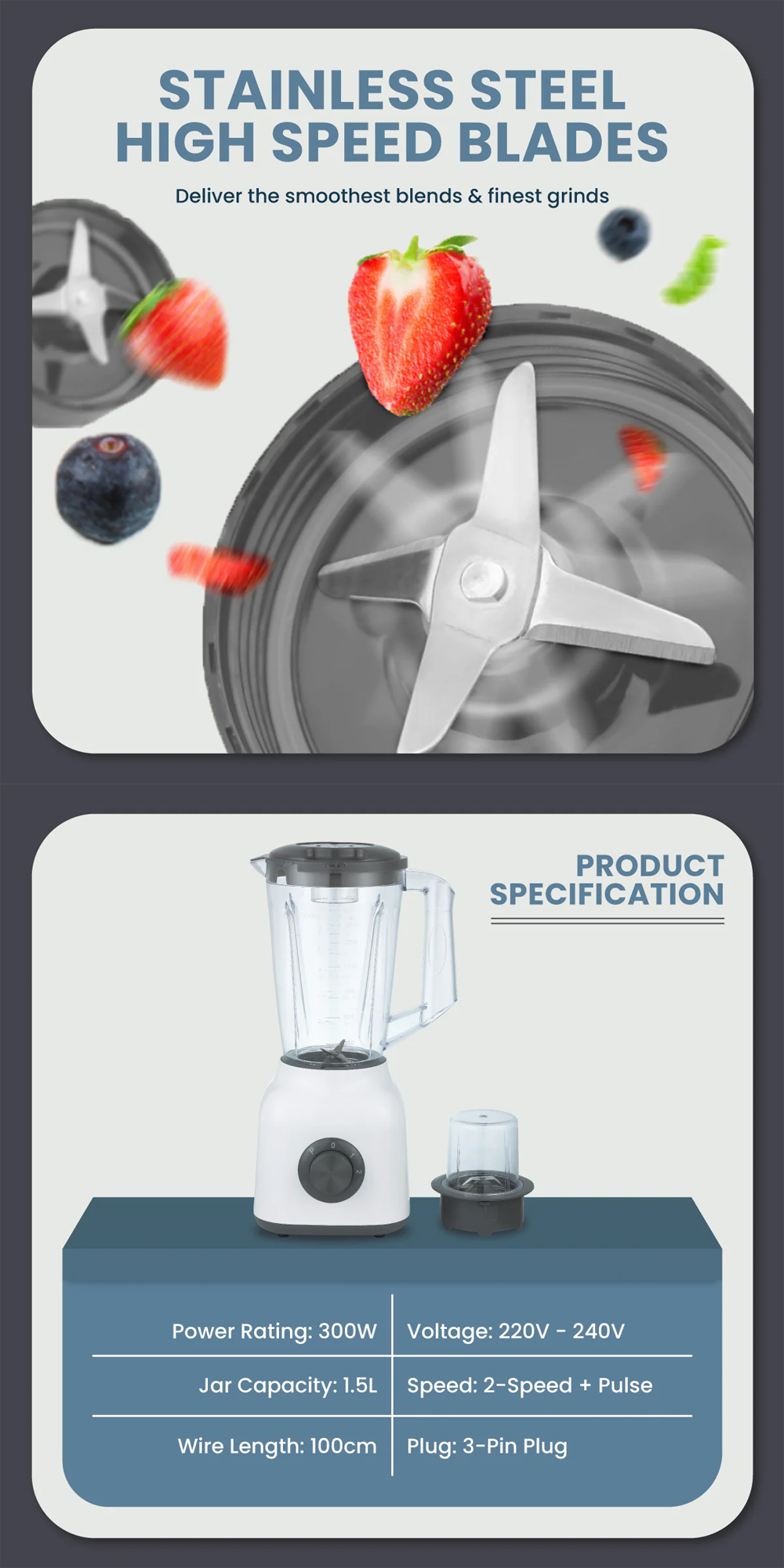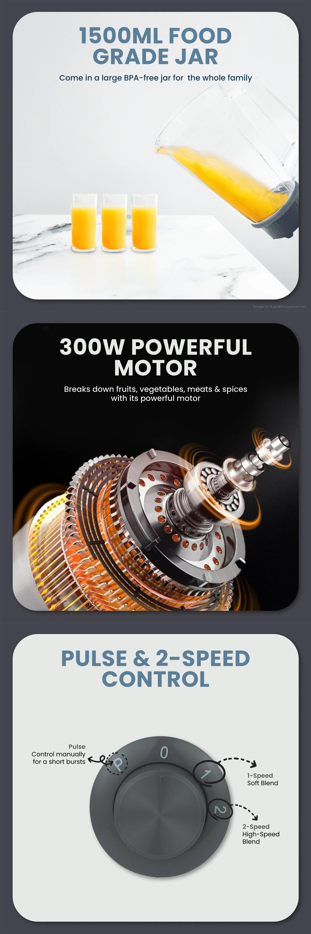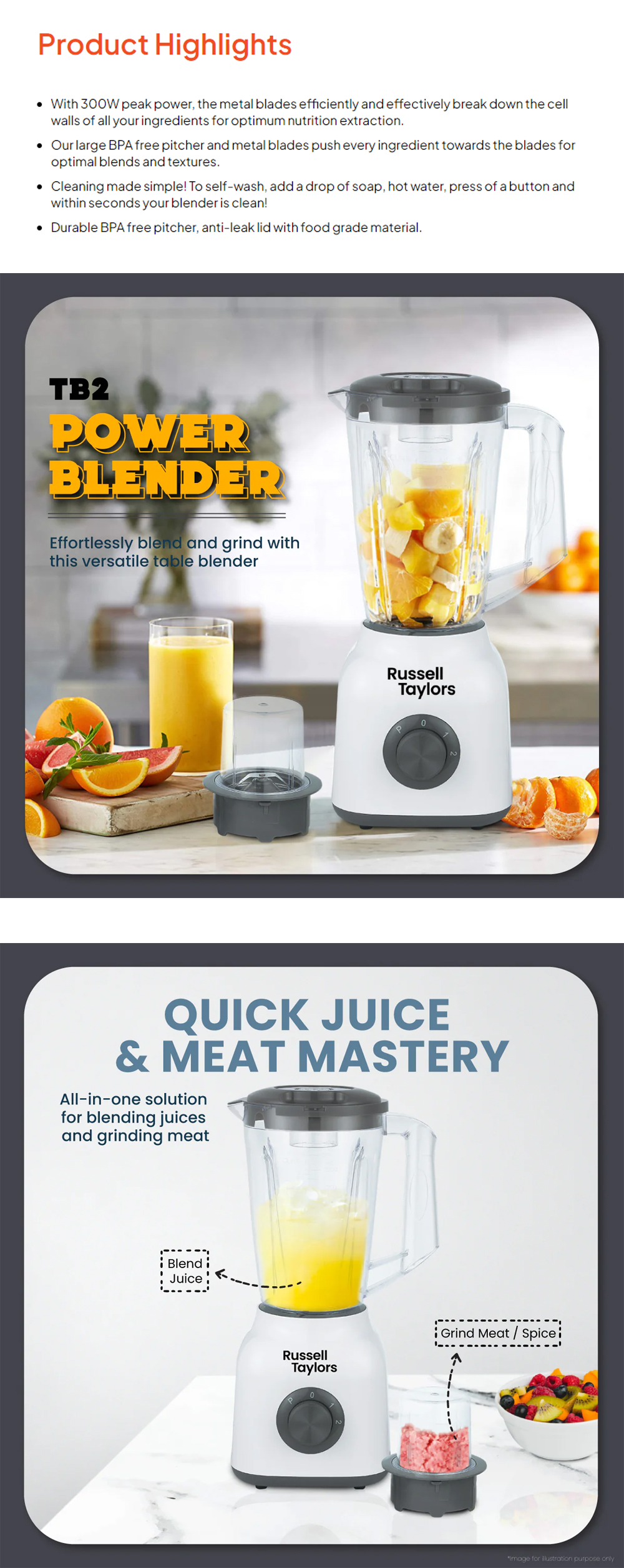 Russell Taylors 1.5L Power Blender with Dry Mill TB2 | Quick Juice & Meat Mystery | 1500ml Food Grade Jar | 300W Powerful Motor
