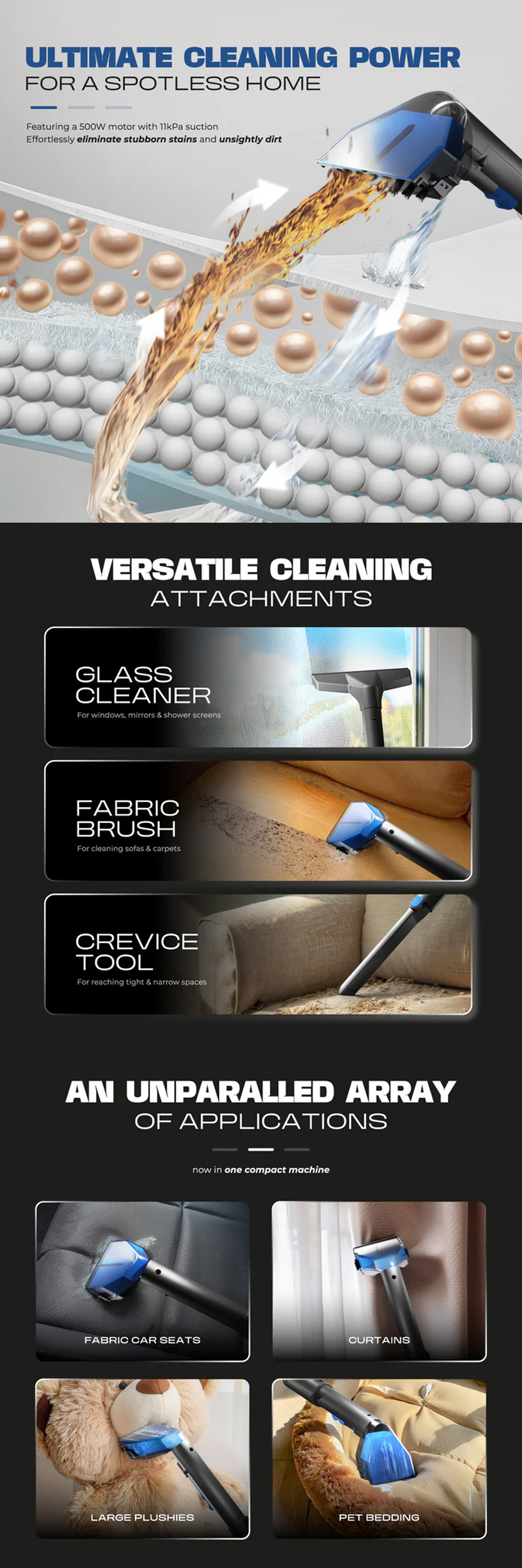 ▪ Clean fabrics, mirrors & windows effortlessly with our All-in-One spot cleaner