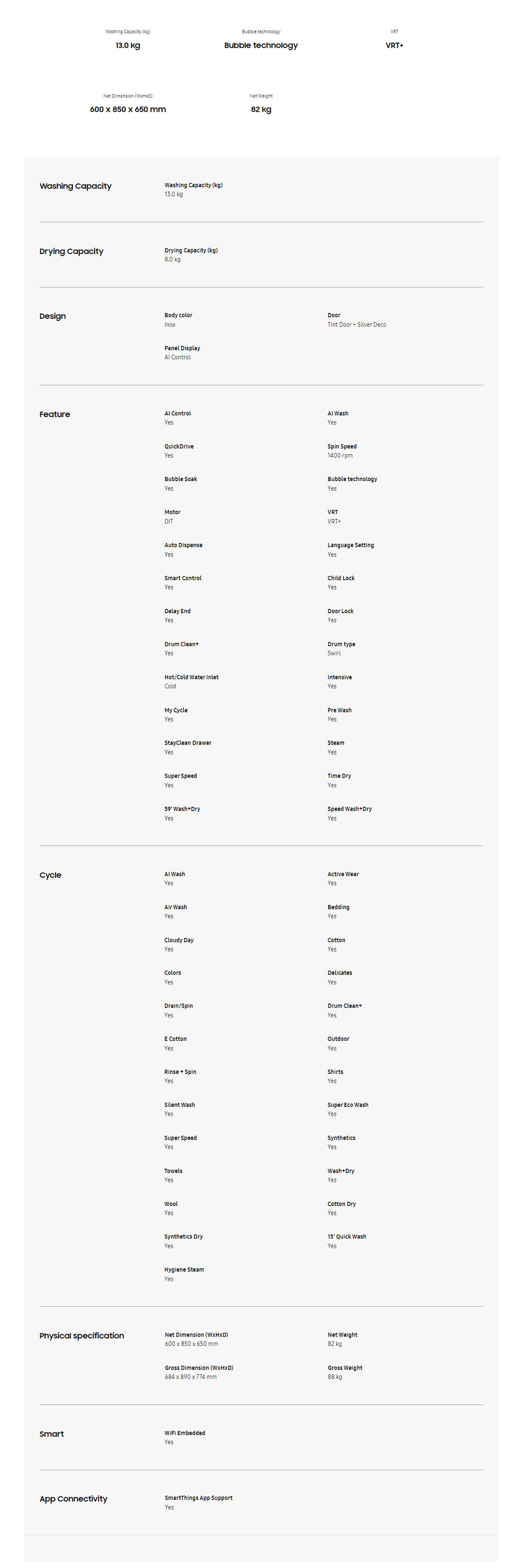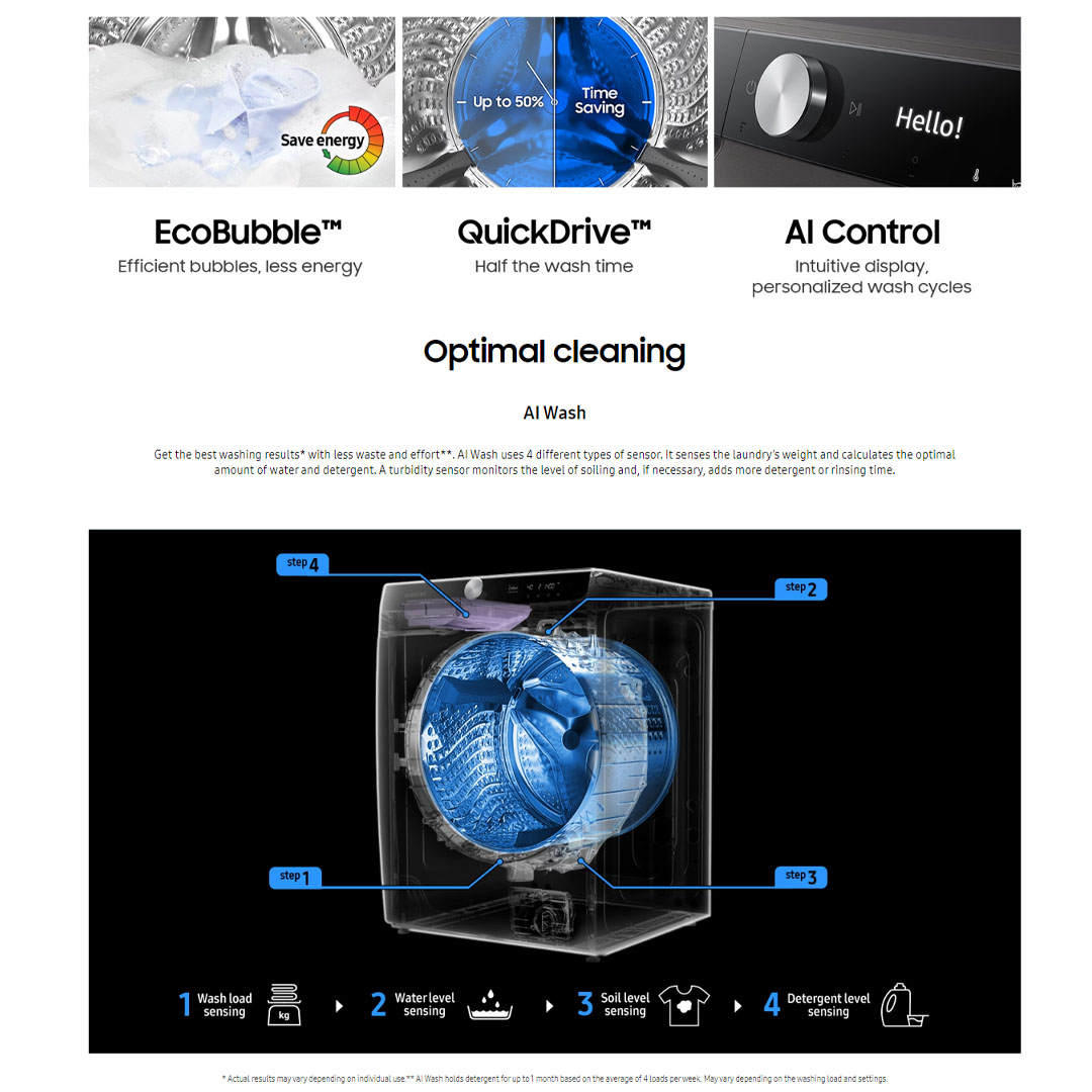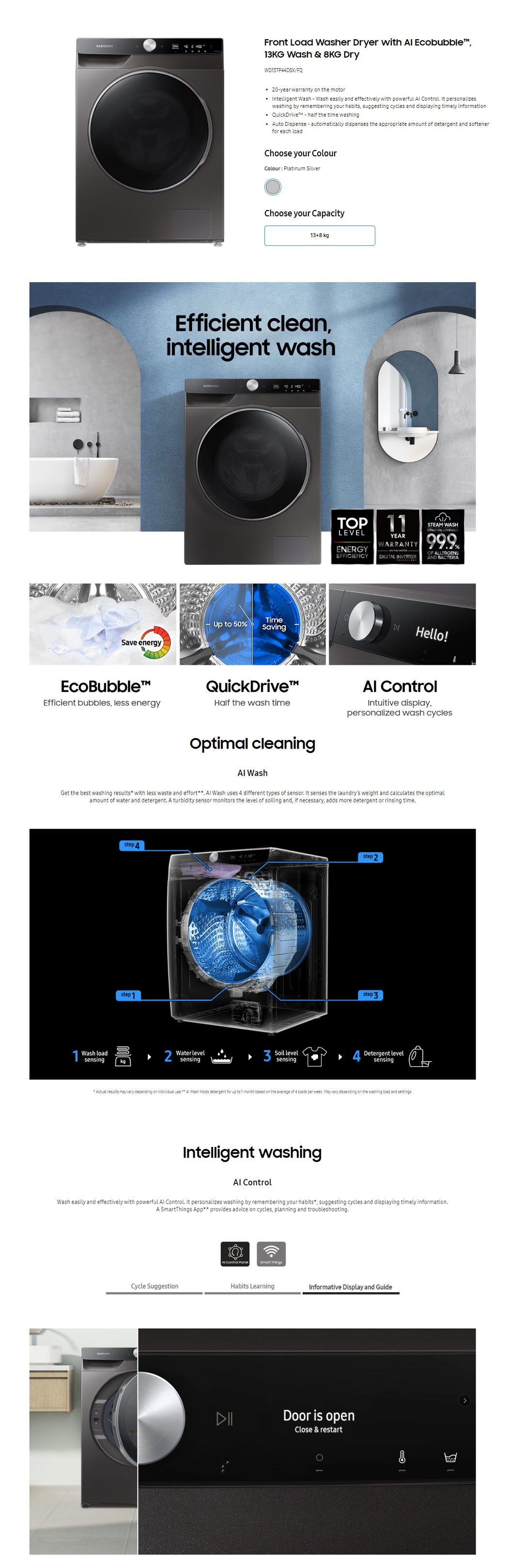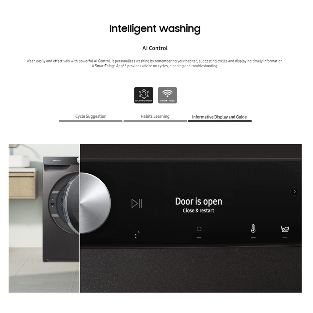 SAMSUNG 13KG/8KG Front Load Washer Dryer WD13TP44DSX/FQ | AI Ecobubble | Intelligent Wash | QuickDrive | Auto Dispense | Air Wash | Super Speed Wash | Washer Dryer with 2 Years General Warranty & 11 Year Motor Warranty