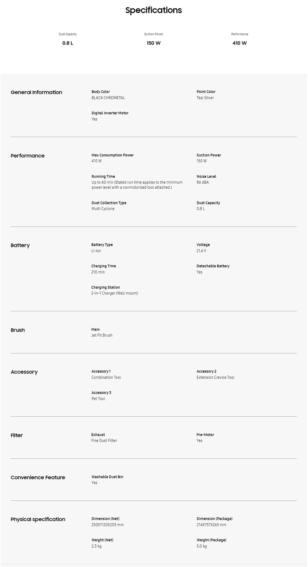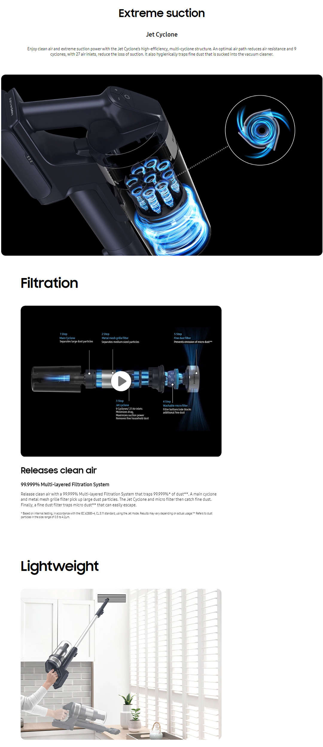 ● Jet Cyclone: Enjoy Clean Air with extreme suction power up to 150W