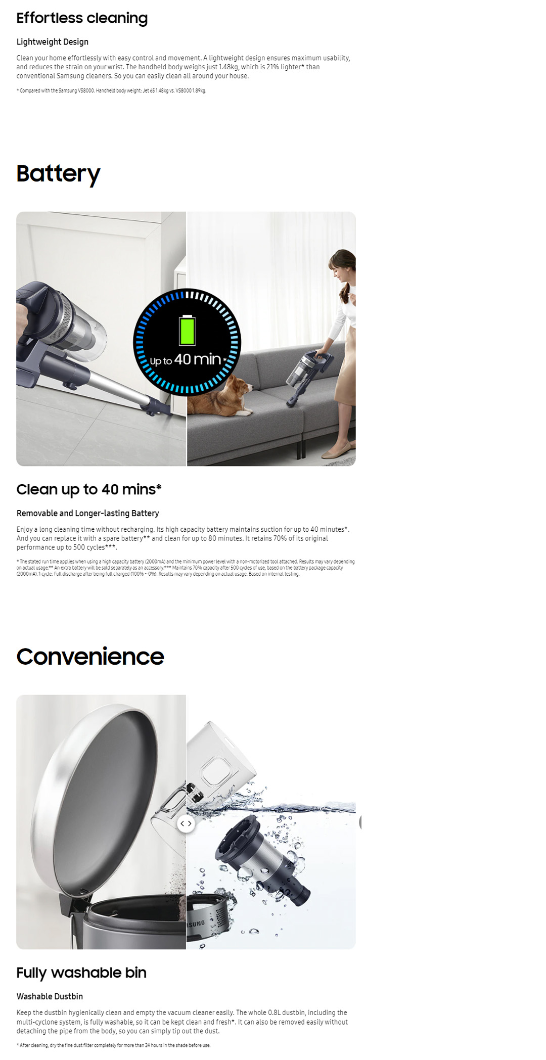● Clean up to 40mins on One Battery
