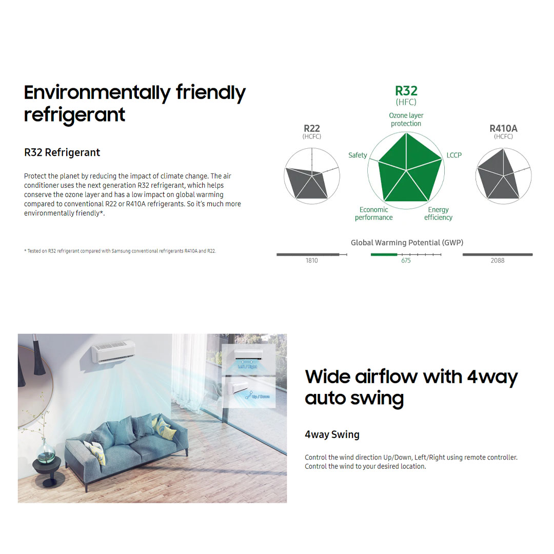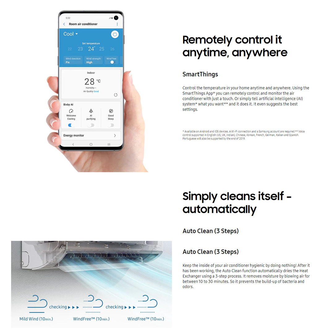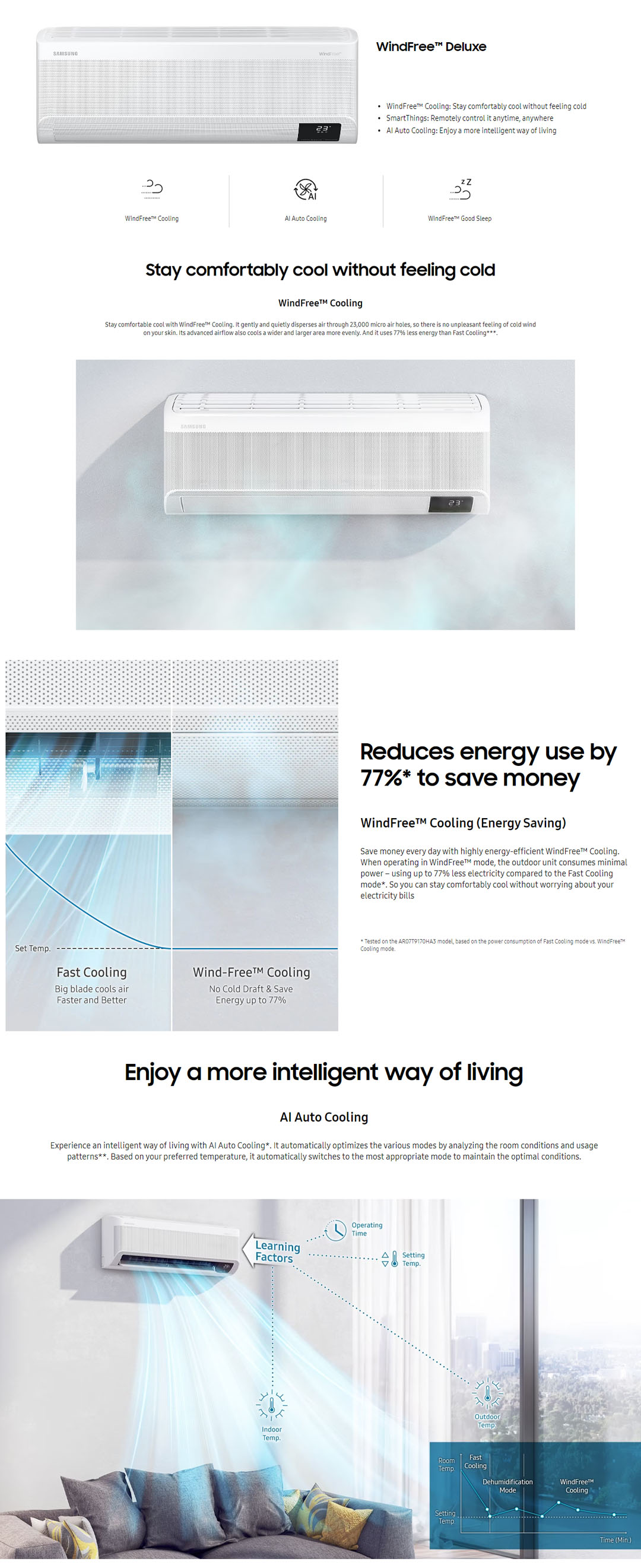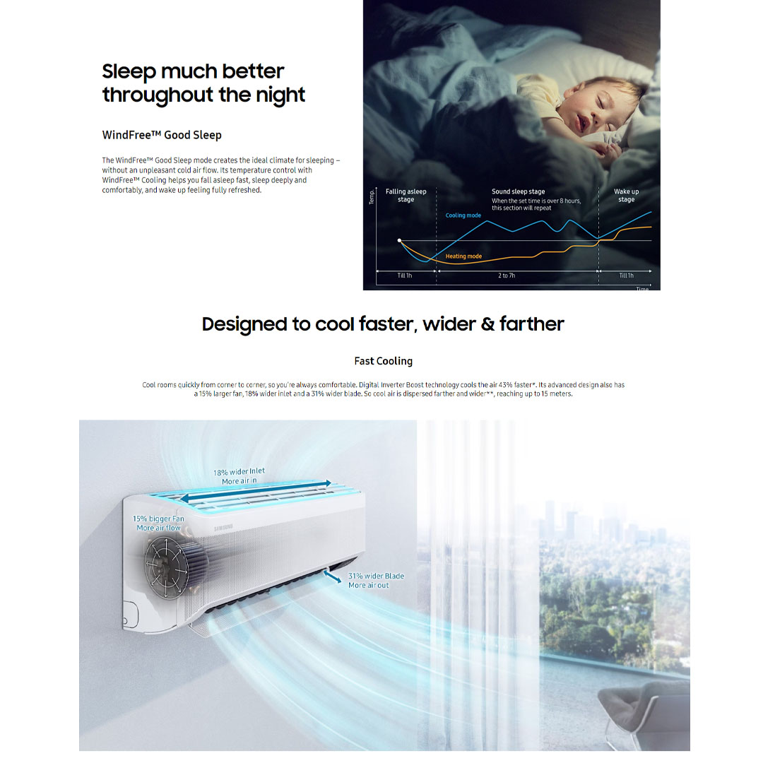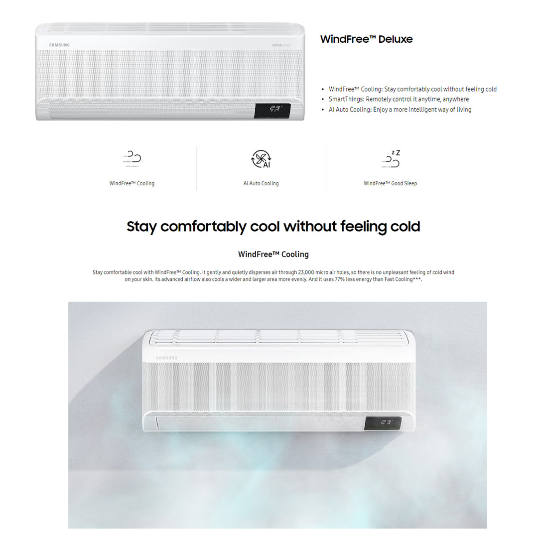 SAMSUNG 1HP/1.5HP/2.0HP R32 Digital Inverter WindFree Deluxe Wall Mount Air Conditioner AR10BYFAMWKNME / AR13BYFAMWKNME / AR18BYFAMWKNME | SmartThings | AI Auto Cooling | Air Conditioner with 1 Year General Warranty & 10 Years Compressor Warranty