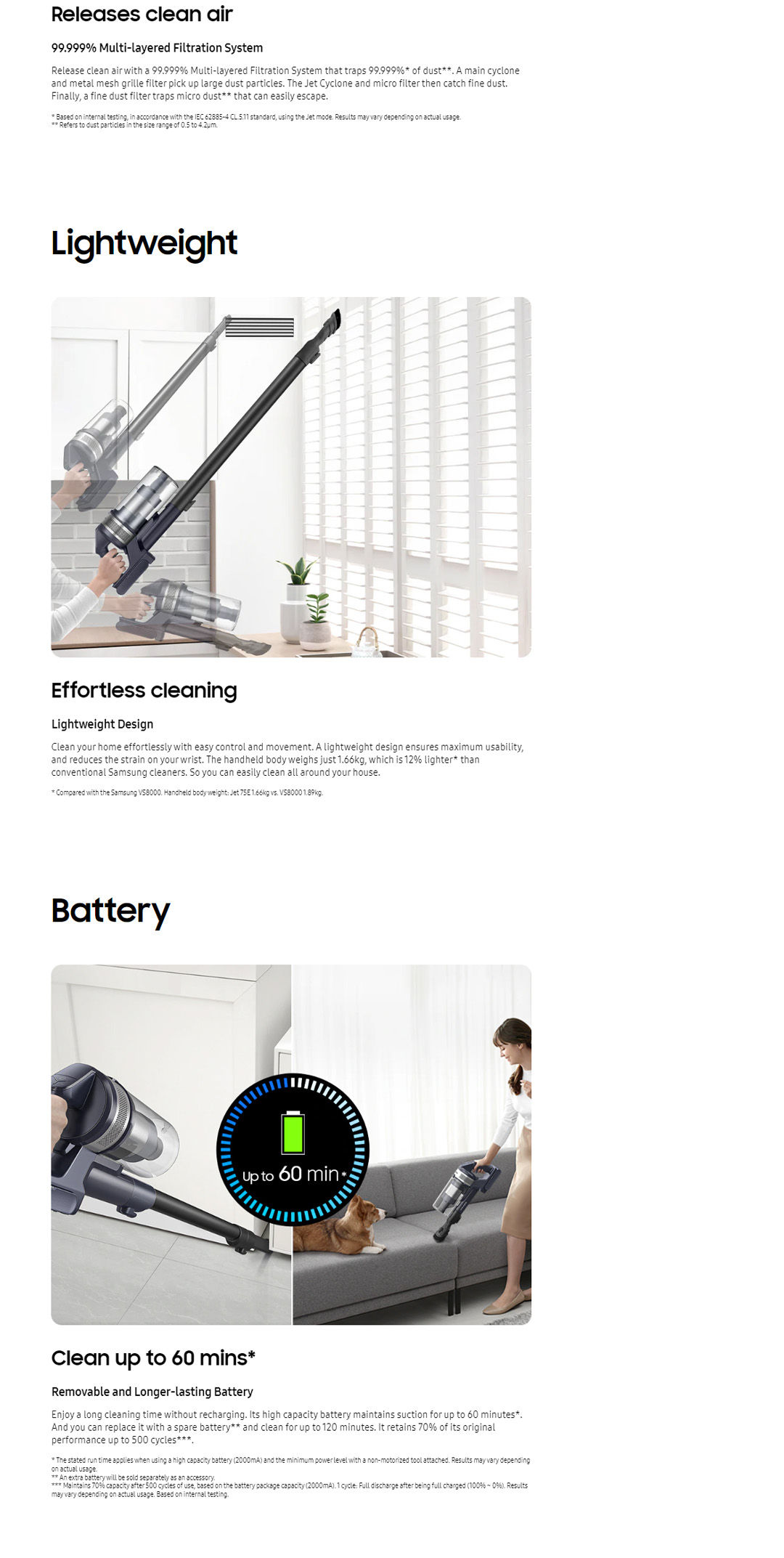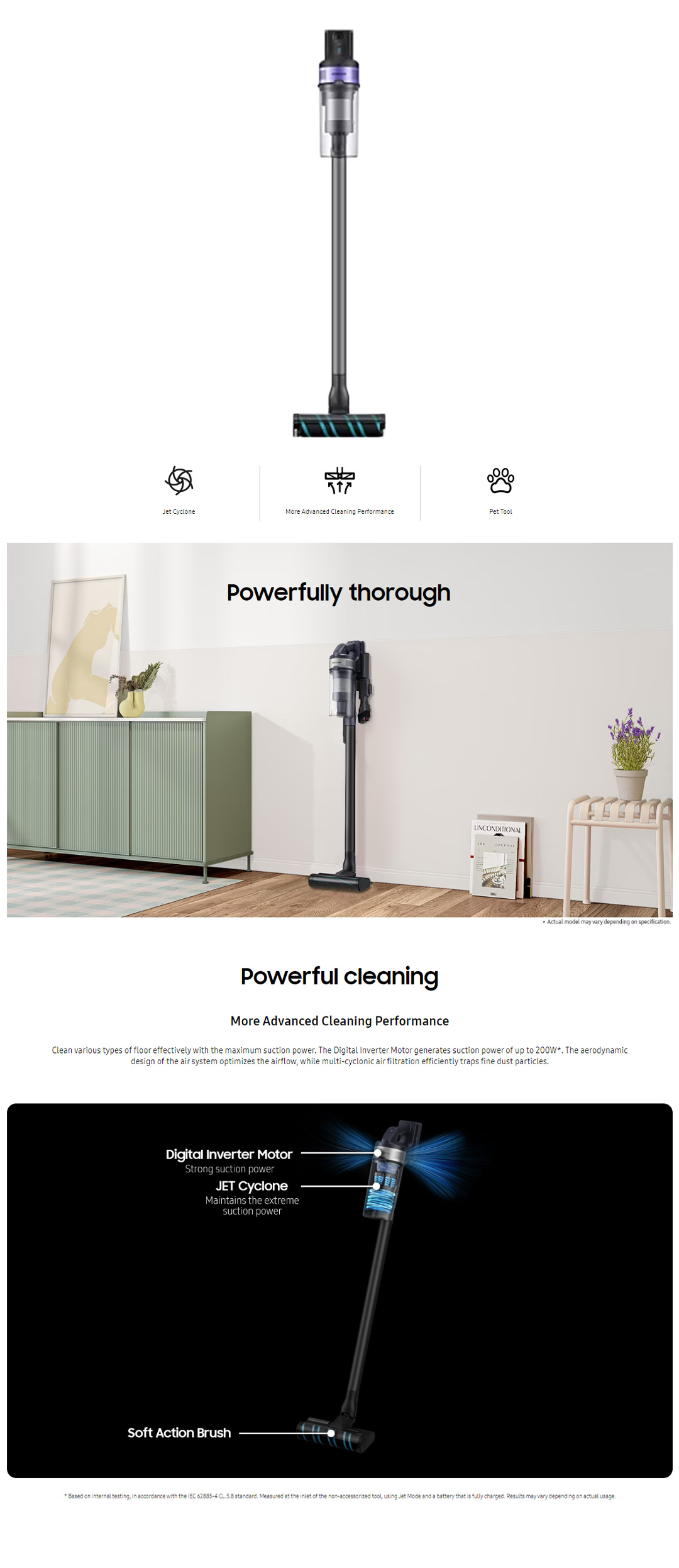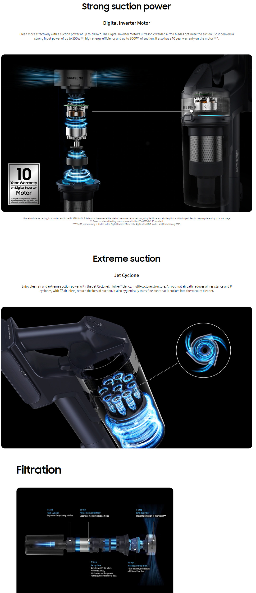 ● Jet Cyclone: Enjoy Clean Air with extreme suction power up to 200W