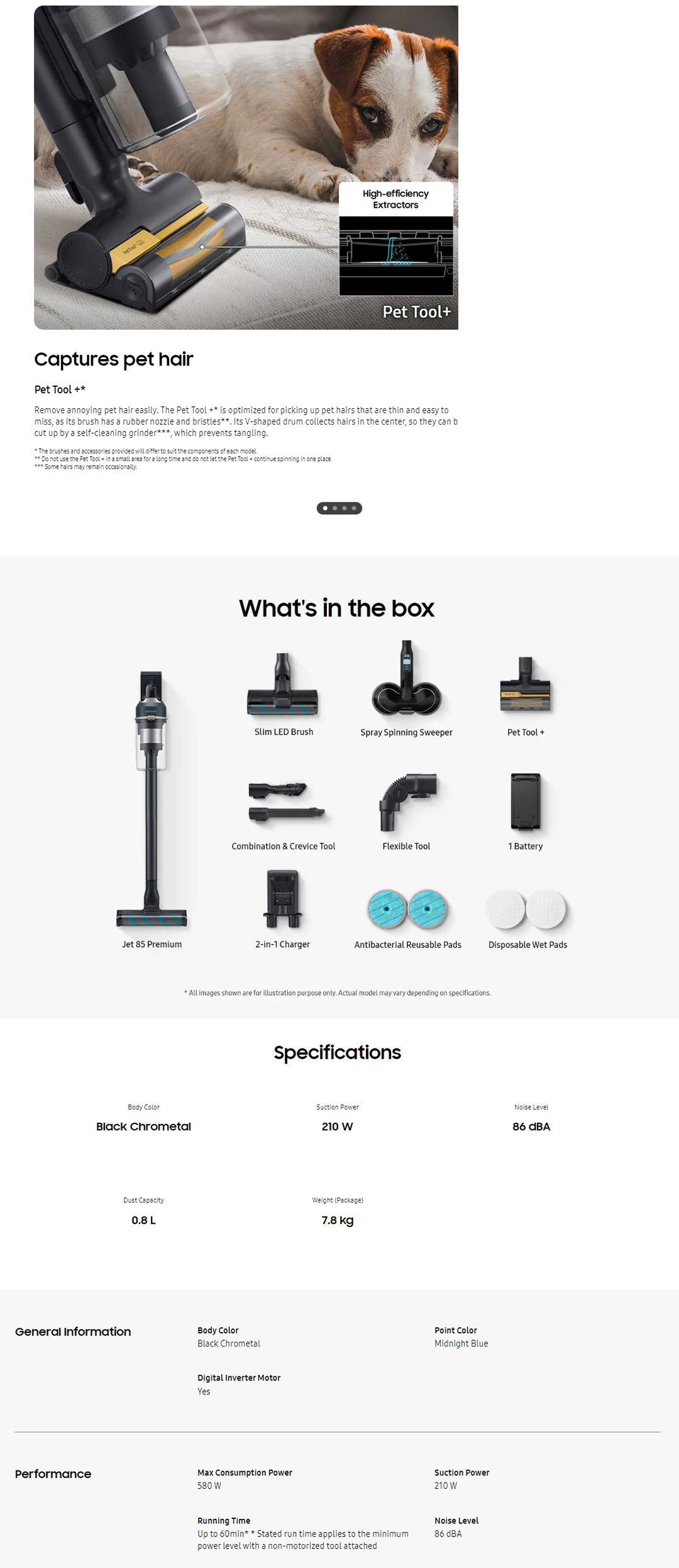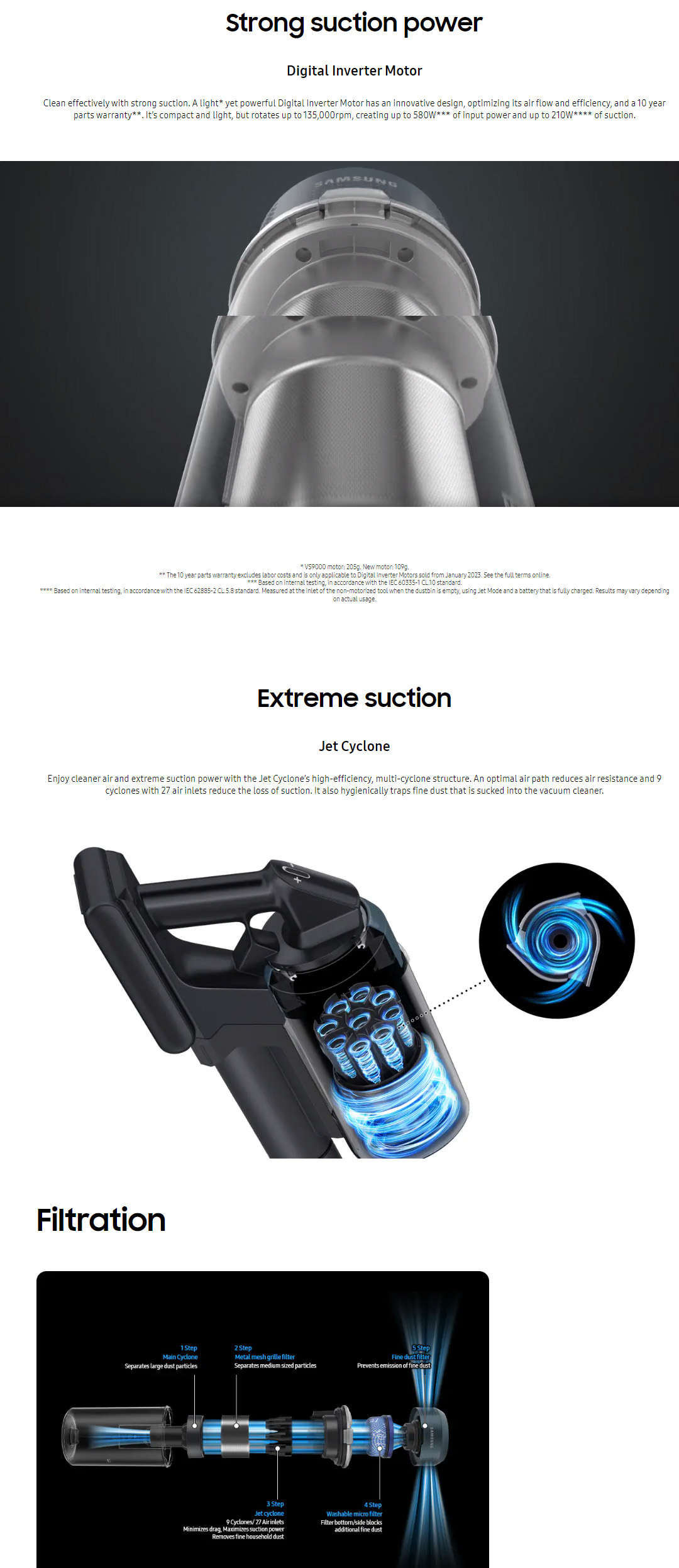 ● Jet Cyclone: New advance technology with extreme suction power up to 210W.