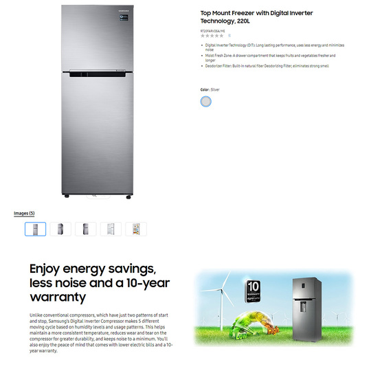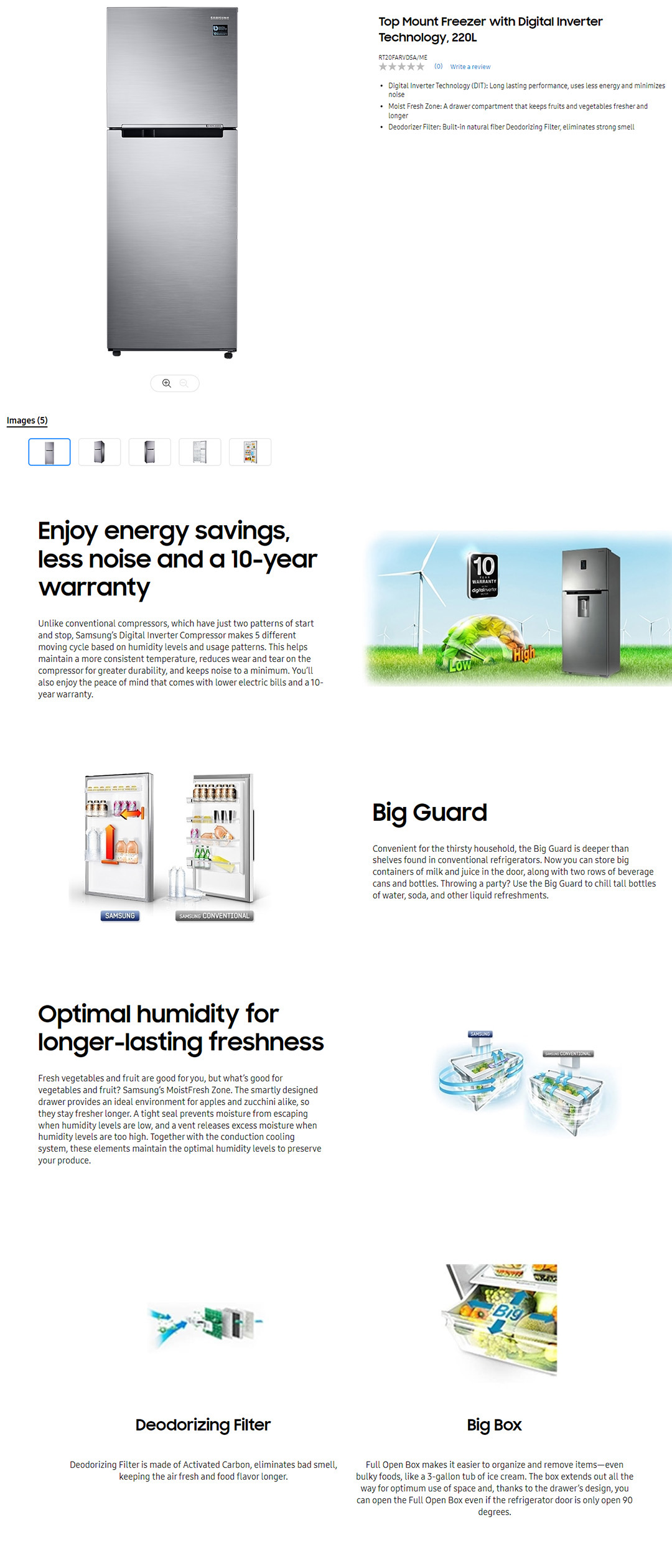 SAMSUNG 220L 2 Doors Top Mount Inverter Refrigerator RT20FARVDSA/ME | MoistFresh Zone | Dedorizing Filter | Refrigerator with 1 Year General & 10 Year Compressor Warranty