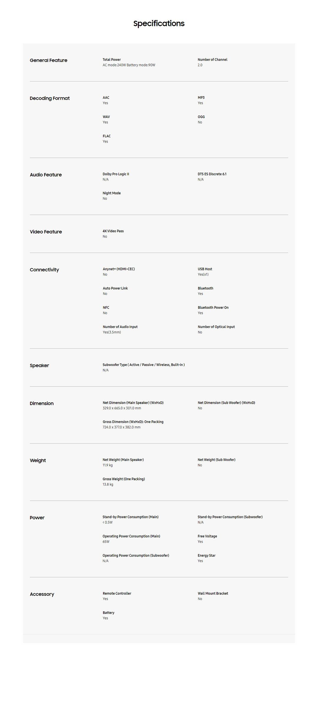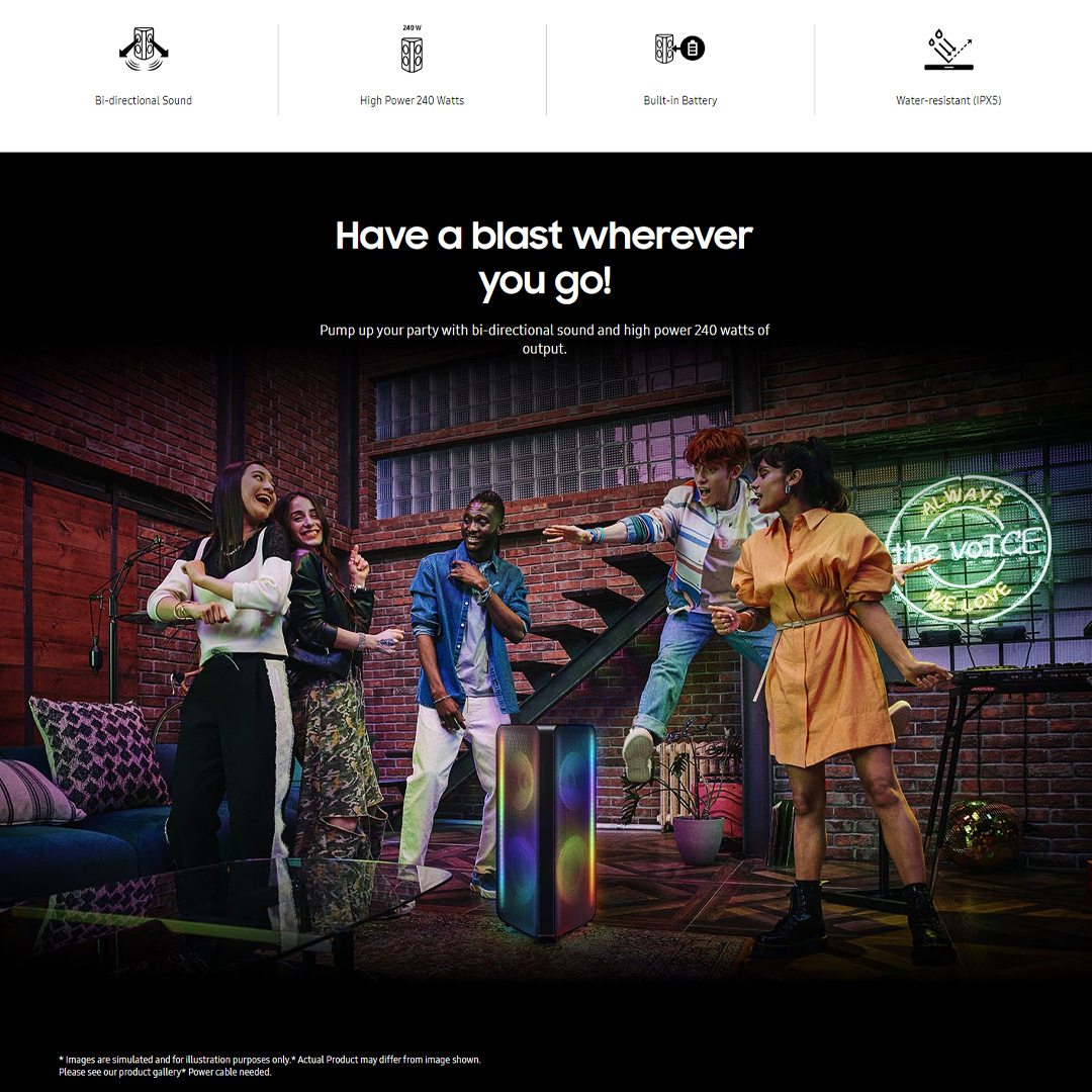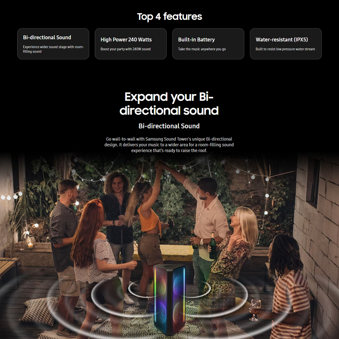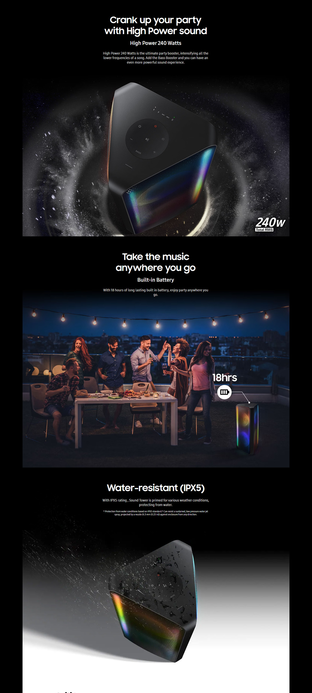SAMSUNG 240W Sound Tower MX-ST50B/XM | Bluetooth | Water Resistant (IPX5) | Part Lights+ | Bi-Directional Sound | Sound Tower with 1 Year Warranty