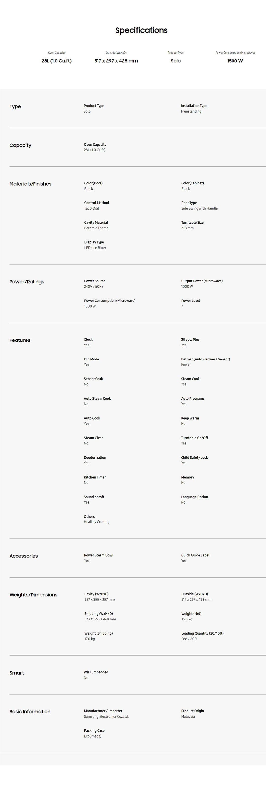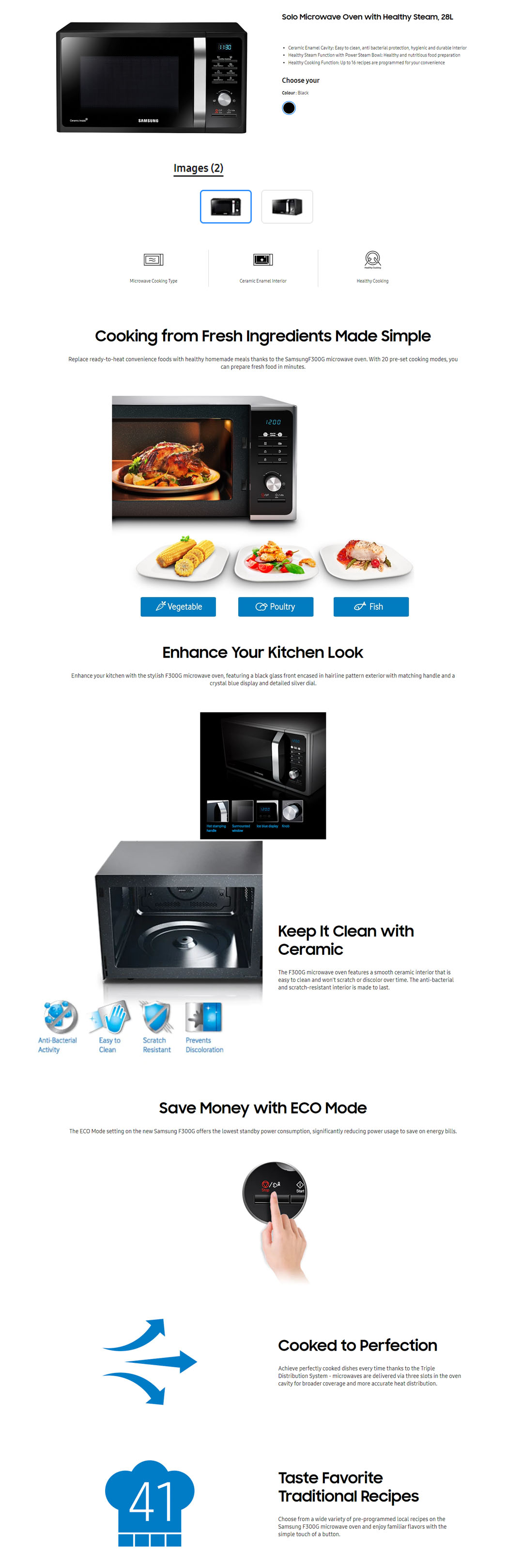 SAMSUNG 28L Solo Microwave Oven MS28F303TFK/SM | Ceramic Enamel Cavity | Healthy Steam Function with Power Steam Bowl | Healthy Cooking Function | Microwave Oven with 1 Year Warranty