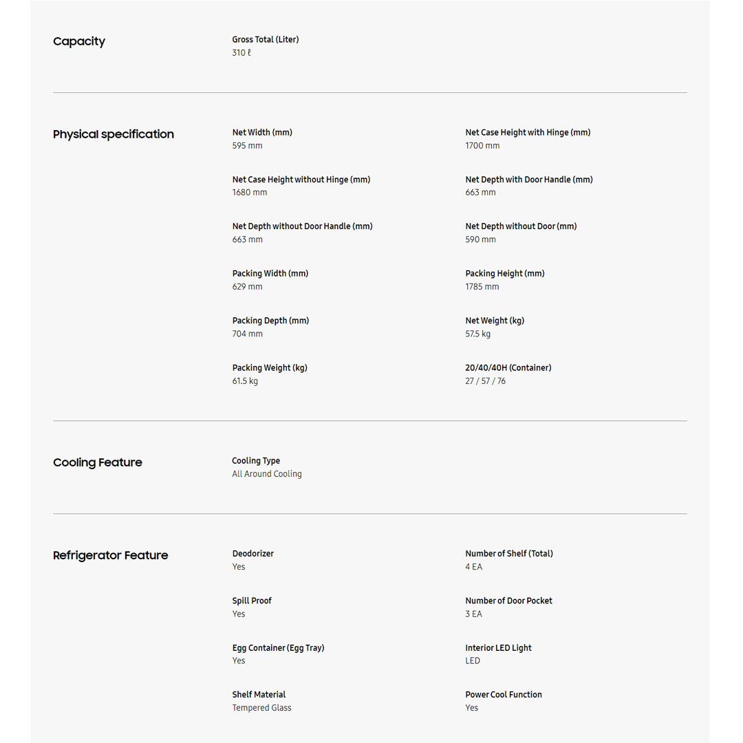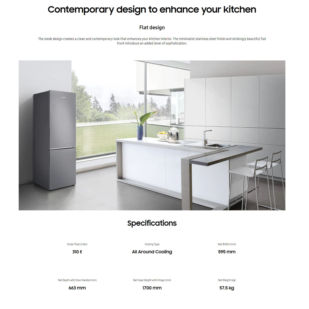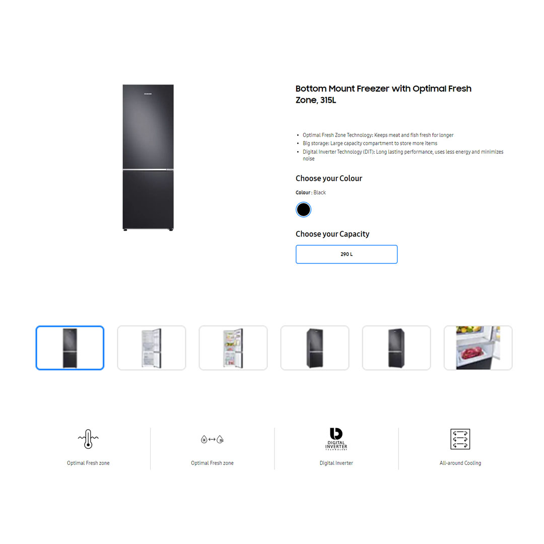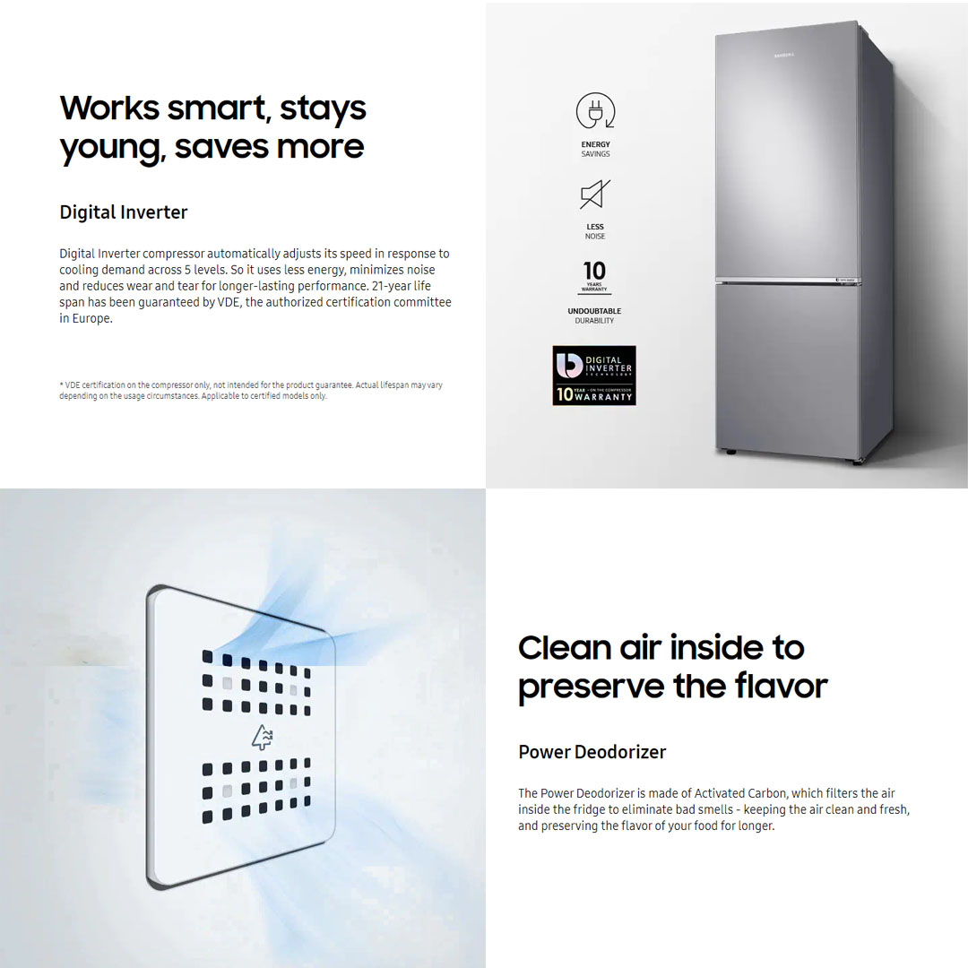 SAMSUNG 315L 2 Doors Bottom Mount Inverter Refrigerator RB30N4050B1/ME | Optimal Fresh Zone | Power Dedorizer | Refrigerator with 1 Year General & 10 Year Compressor Warranty