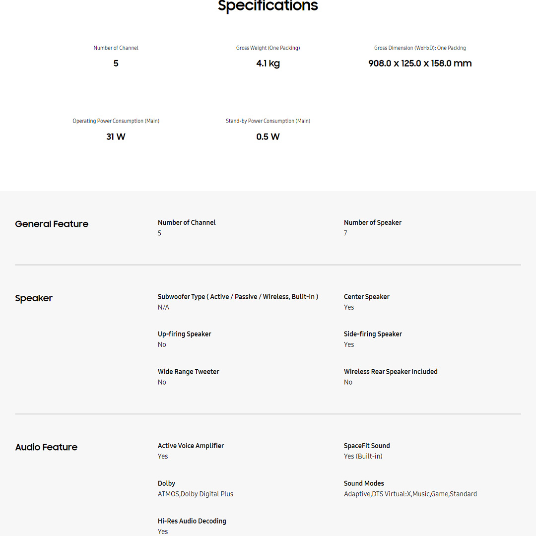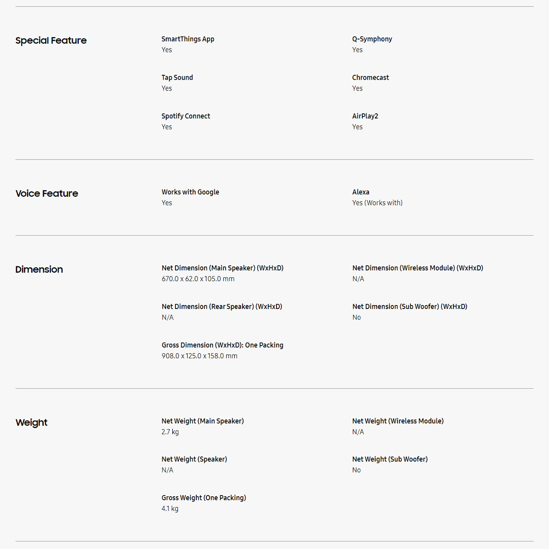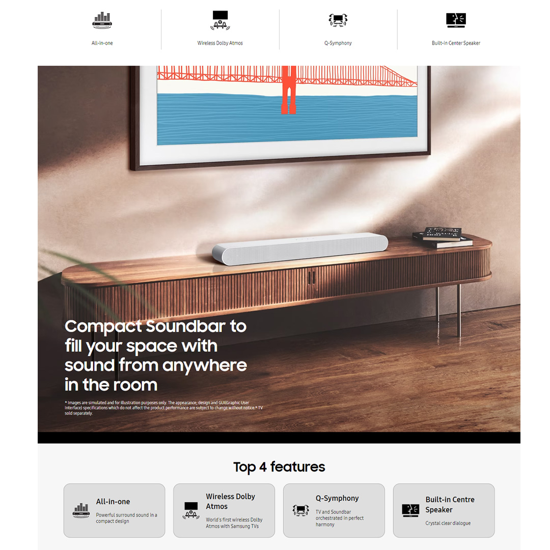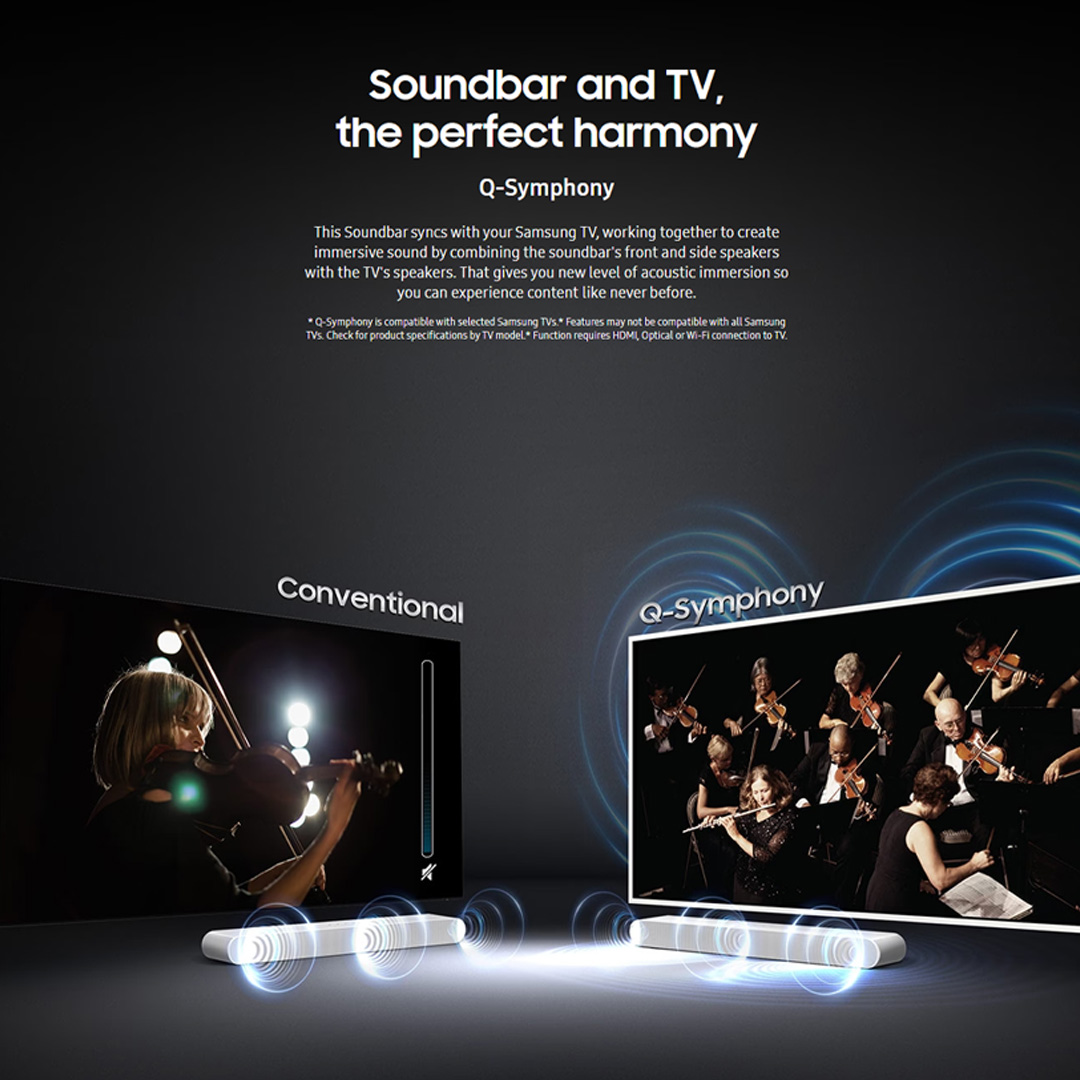 SAMSUNG 31W Lifestyle Soundbar HW-S61B/XM | HDMI | Bluetooth | SmartThings App | Q-Symphony | Chromecast | Spotify Connect | AirPlay2 | Soundbar with 1 Year Warranty