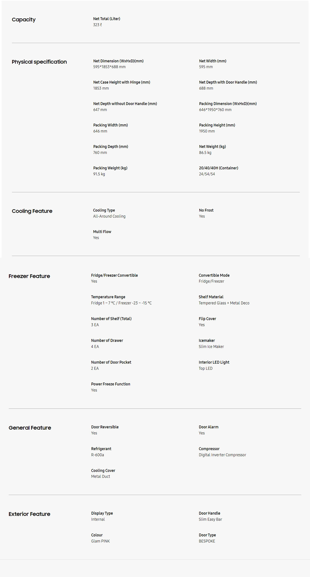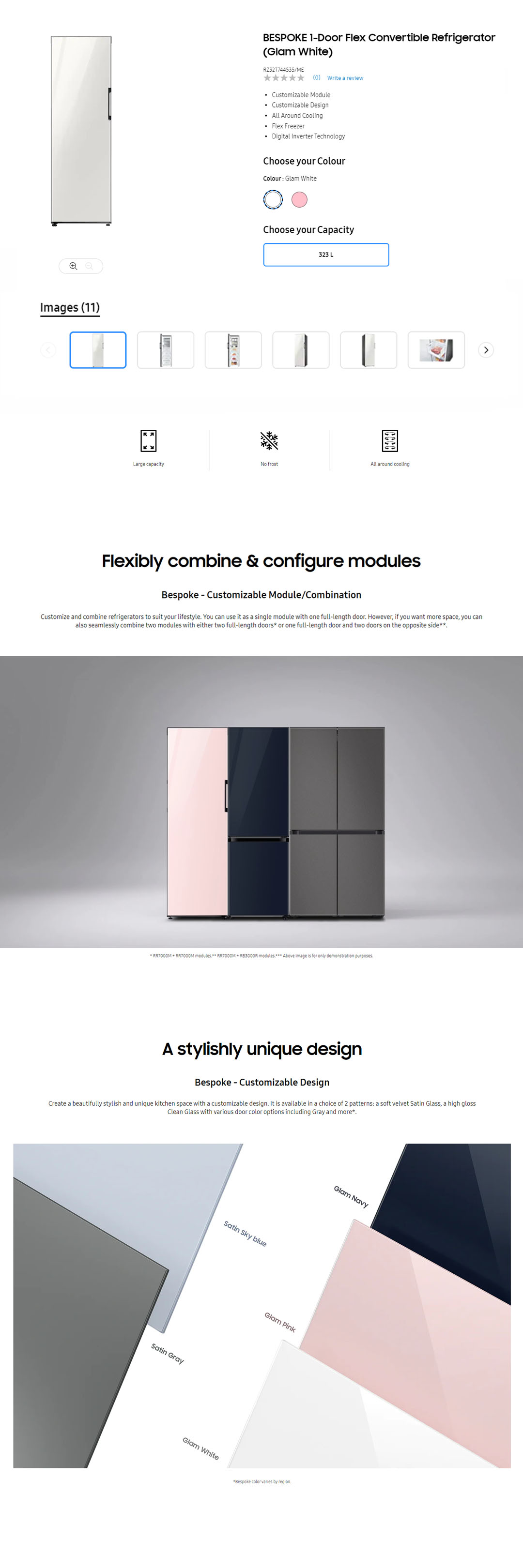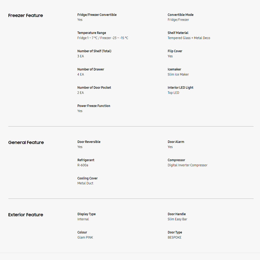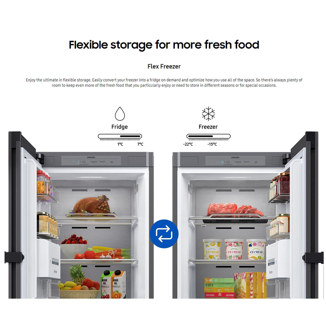 SAMSUNG 323L 1 Door BESPOKE Flex Convertible Refrigerator RZ32T744535/ME | Flex Freezer | Digital Inverter Technology | No Frost | Multi Flow | Flip Cover | Ice Maker | Door Reversible | Door Alarm | Internal Display | Refrigerator with 1 Year Warranty