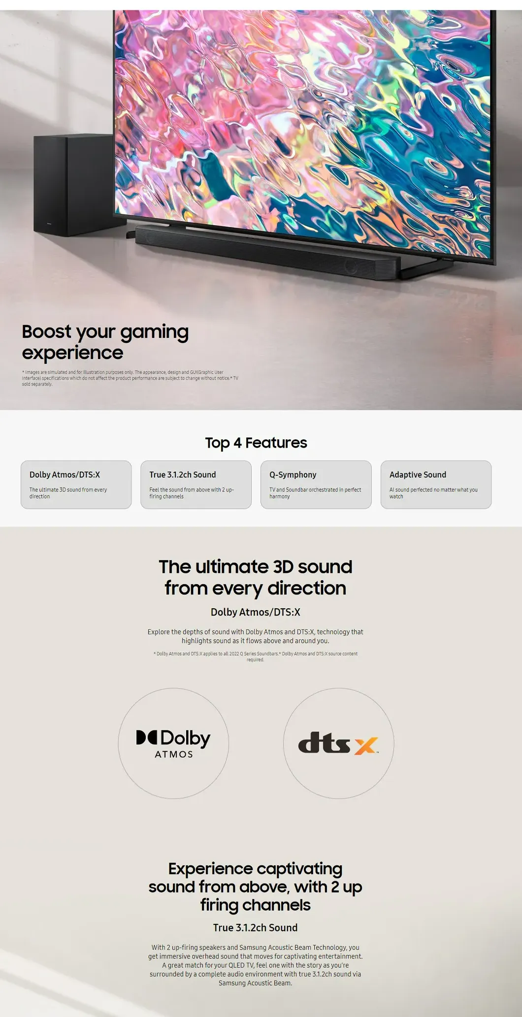 ● Dolby Atmos ● HDMI ● Bluetooth ● Q-Symphony