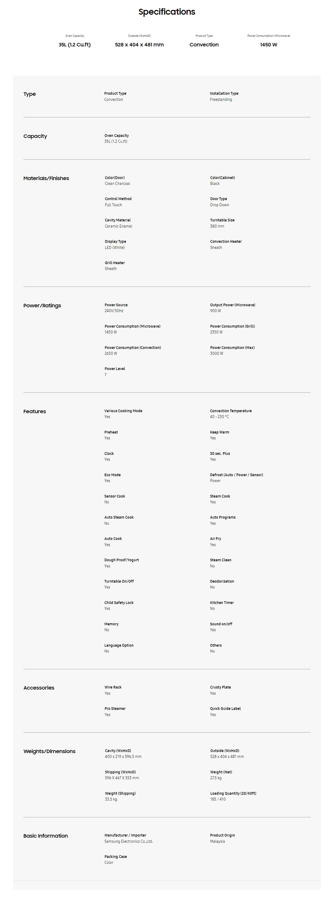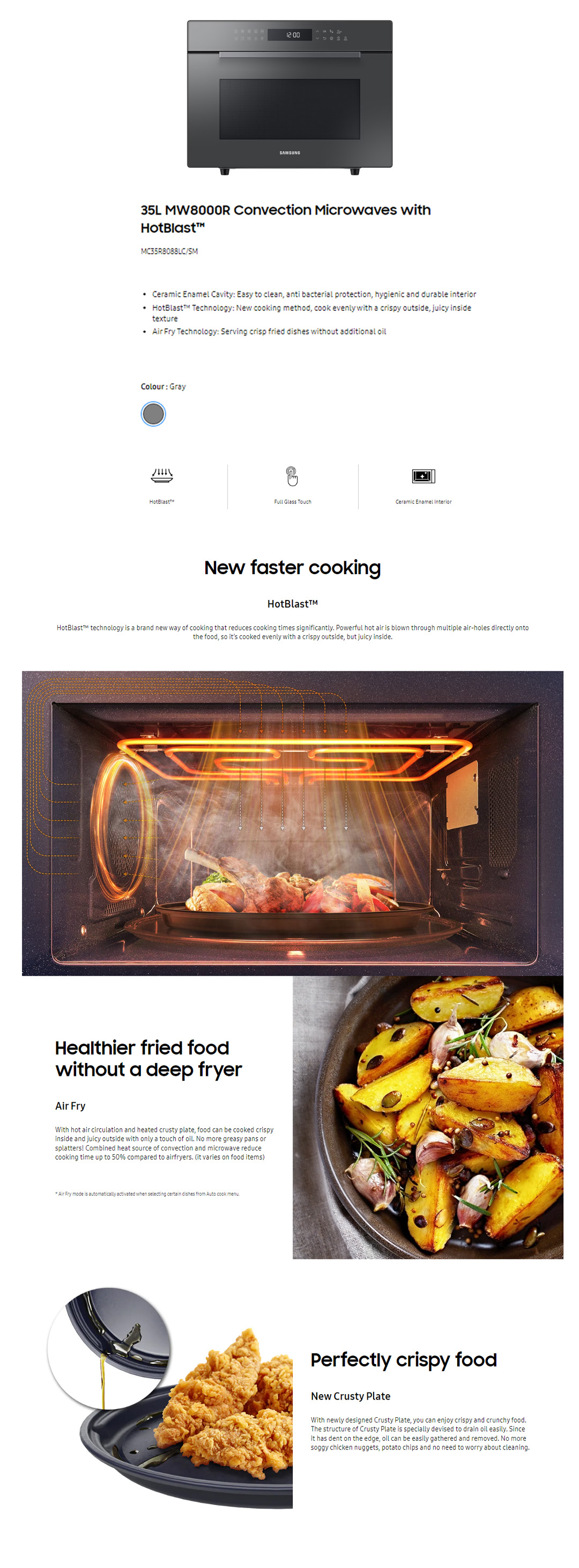 SAMSUNG 35L Convection Microwaves Oven with HotBlast MC35R8088LC/SM | Full Glass Touch | Ceramic Enamel Interior | Preheat | Keep Warm | Eco Mode | Microwaves Oven with 1 Year Warranty