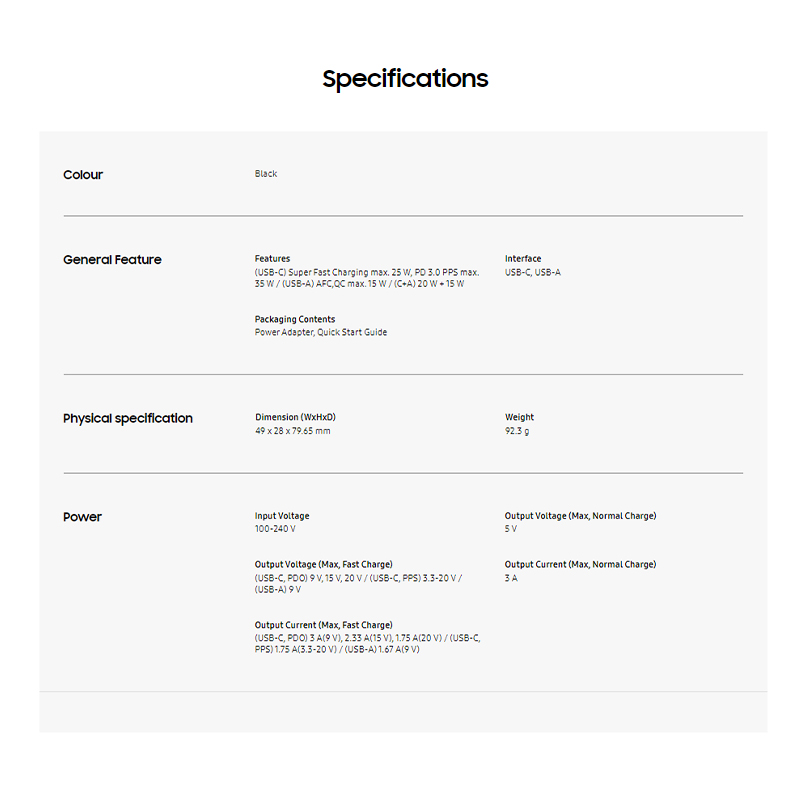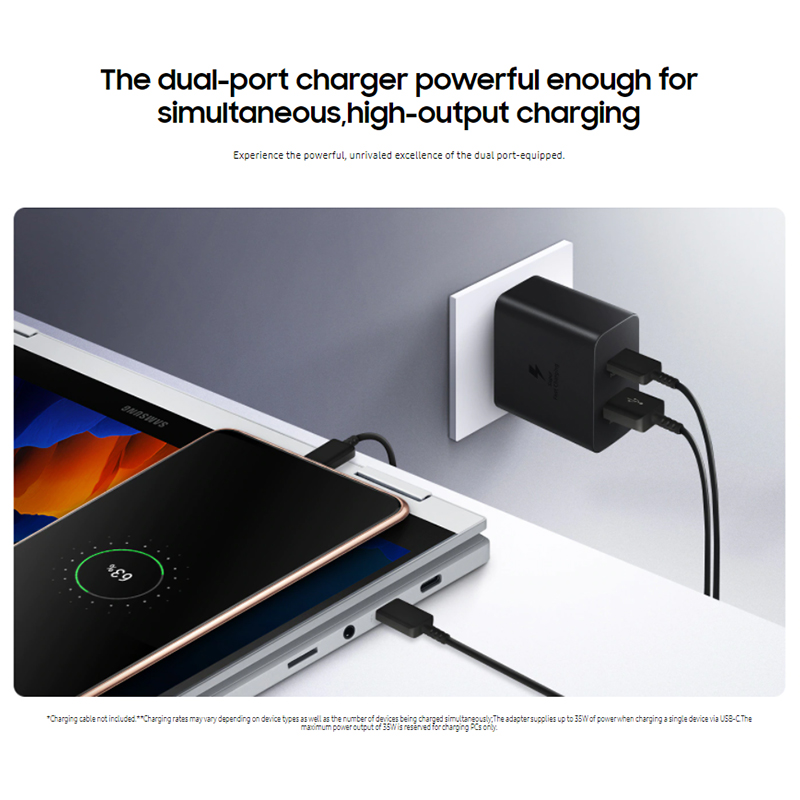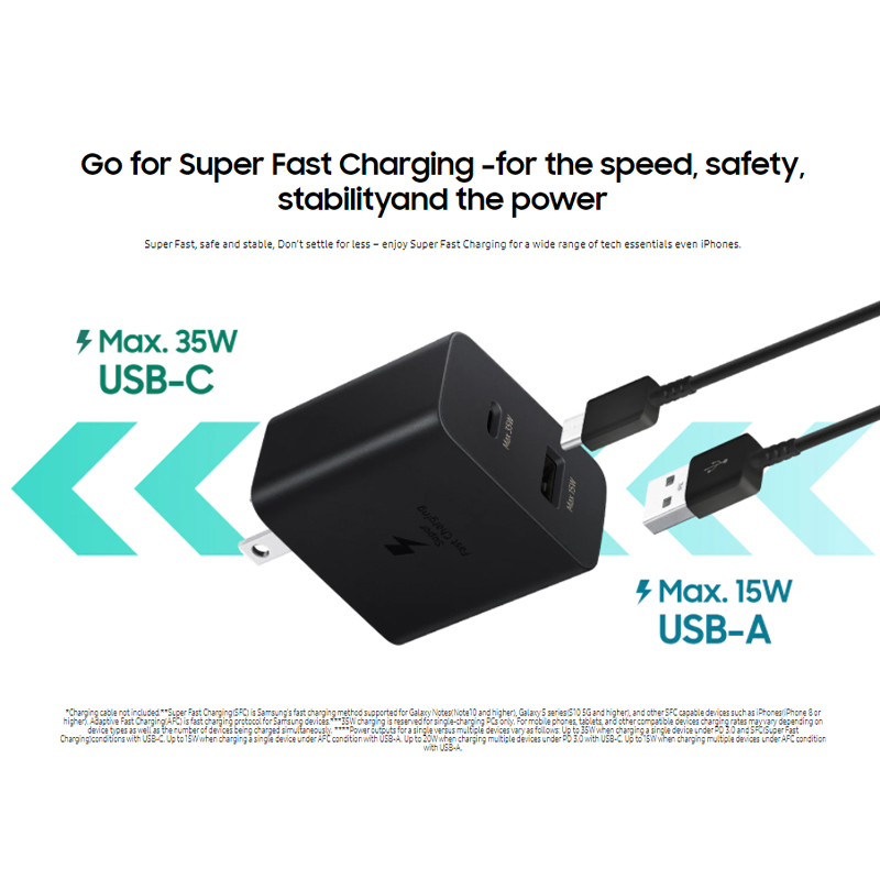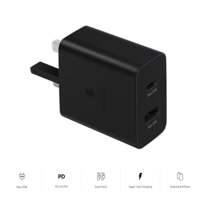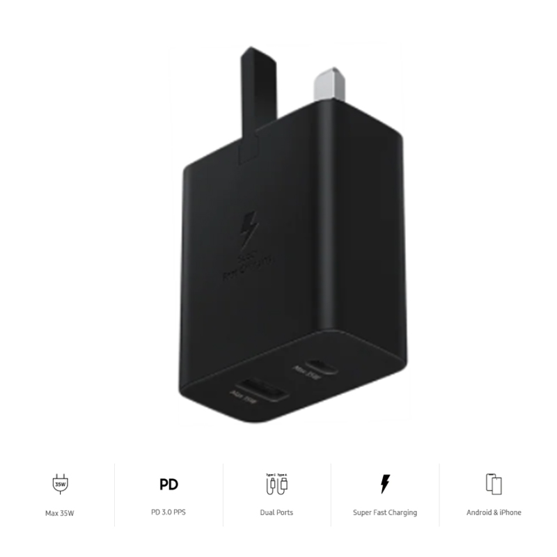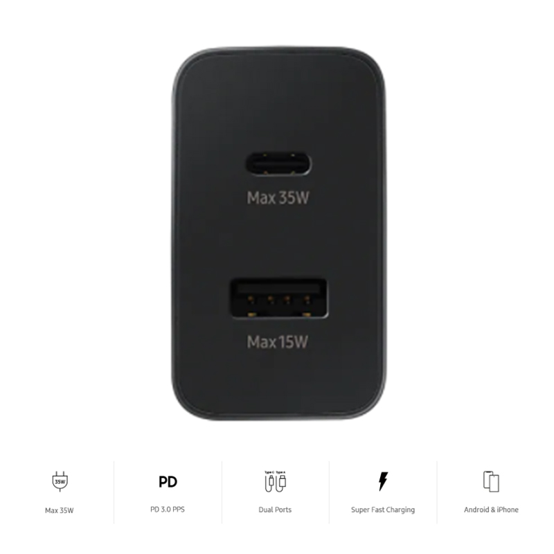 SAMSUNG 35W PD Power Adapter Duo (USB-C, USB-A) EP-TA220NBEGGB | Powerful High Speed Charging | Reliable Dual Charging With High Output | Compatible For Various Devices |