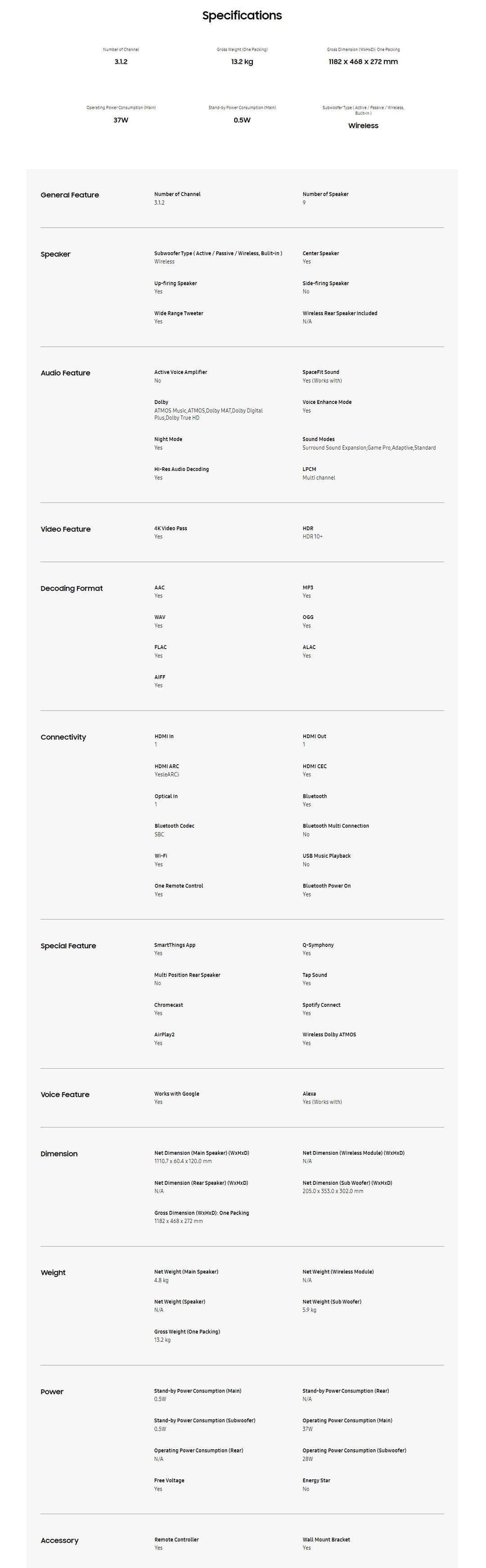 SAMSUNG 37W Q-series Soundbar HW-Q700C/XM | Wi-Fi | HDMI | AirPlay2 | Bluetooth | Q-Symphony | Chromecast | Spotify Connect | Soundbar with 1 Year Warranty