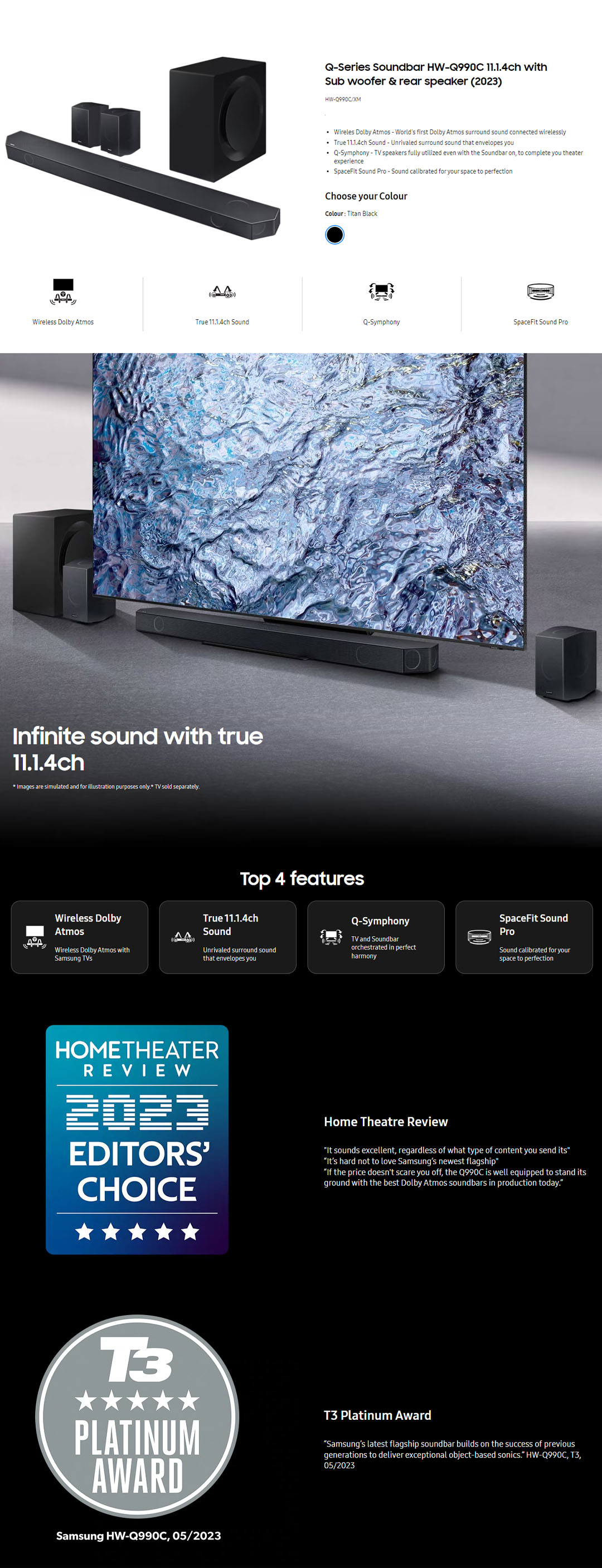 SAMSUNG 41W Q-series Soundbar with Sub Woofer & Rear Speaker HW-Q990C/XM | Wireless Dolby Atmos | True 11.1.4ch Sound | Q-Symphony | Voice assistant & Cast Services | Soundbar with 1 Year Warranty