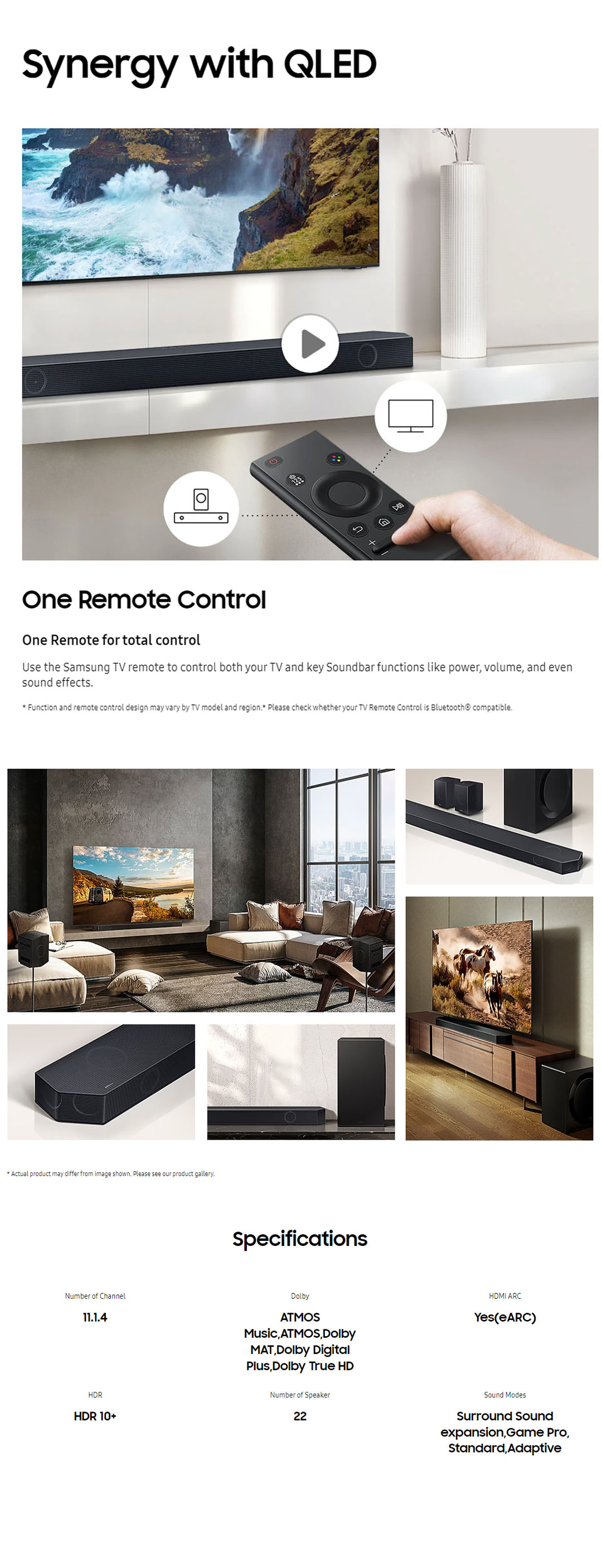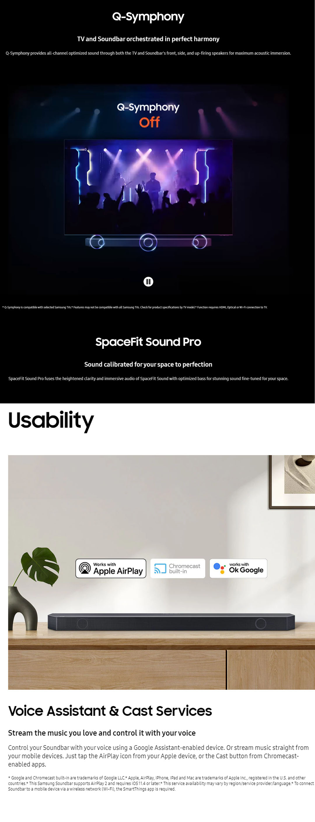 ● Q-Symphony - TV speakers fully utilized even with the Soundbar on, to complete you theater experience