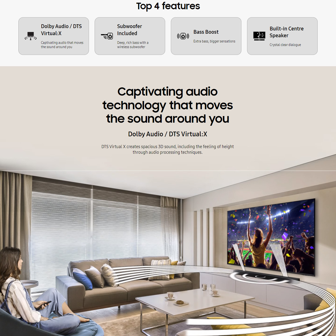 SAMSUNG 430W B-Series Soundbar with Subwoofer HW-B650/XM | HDMI | Bluetooth | USB | HDR 10+ | Dolby 5.1 | Soundbar with 1 Year Warranty