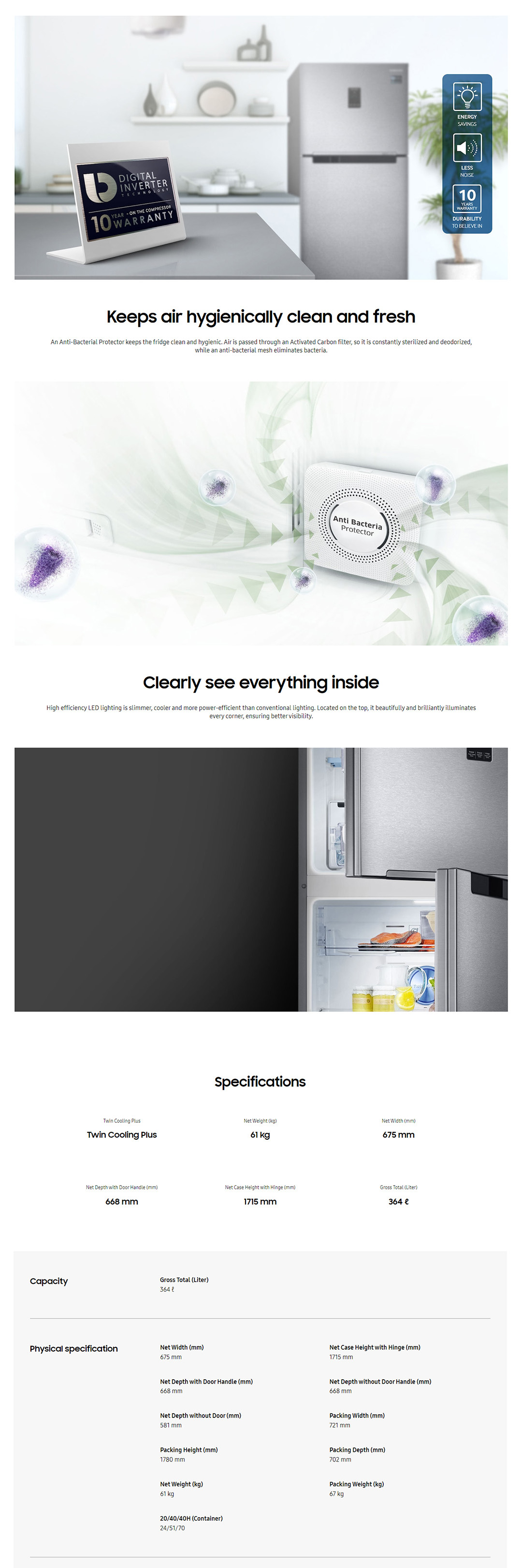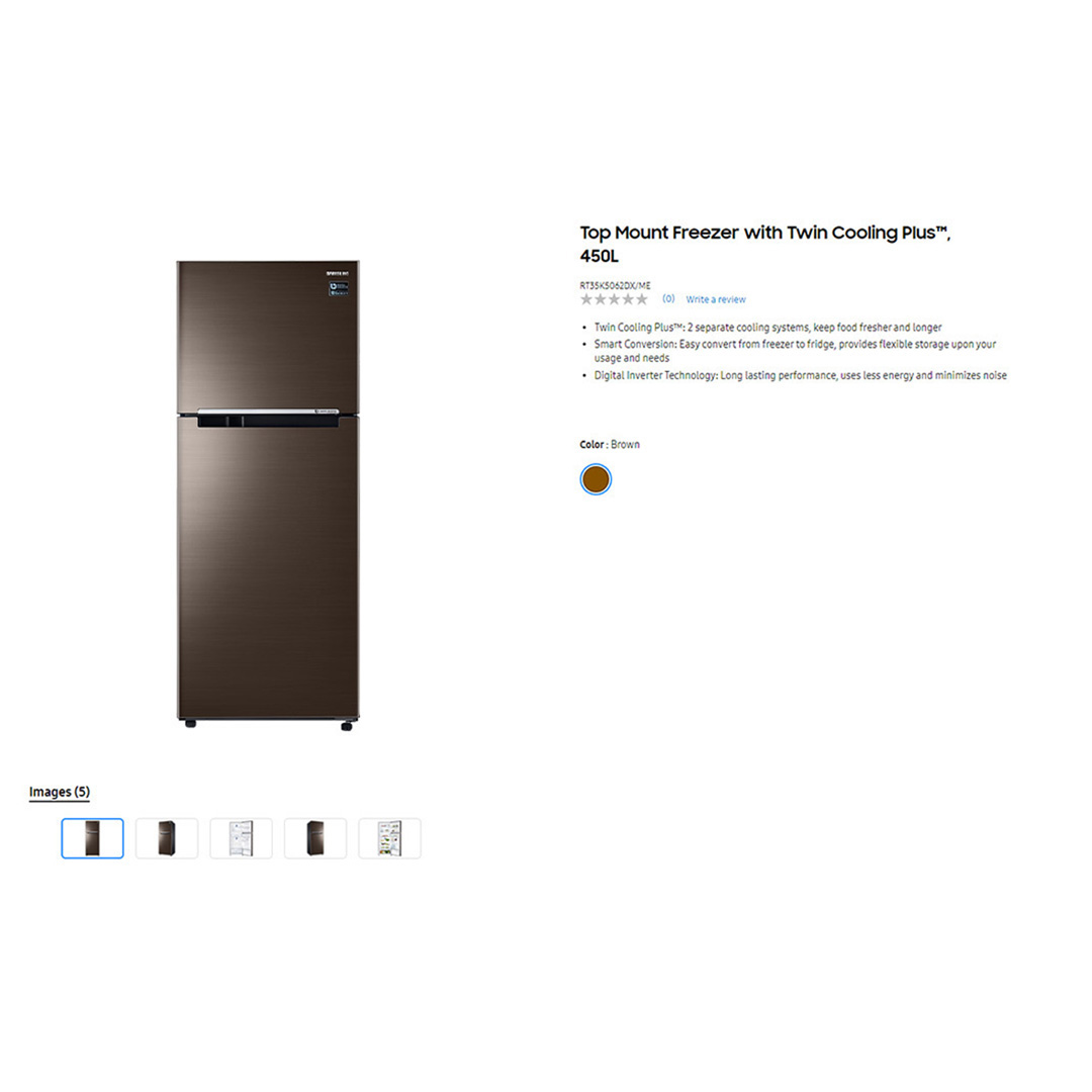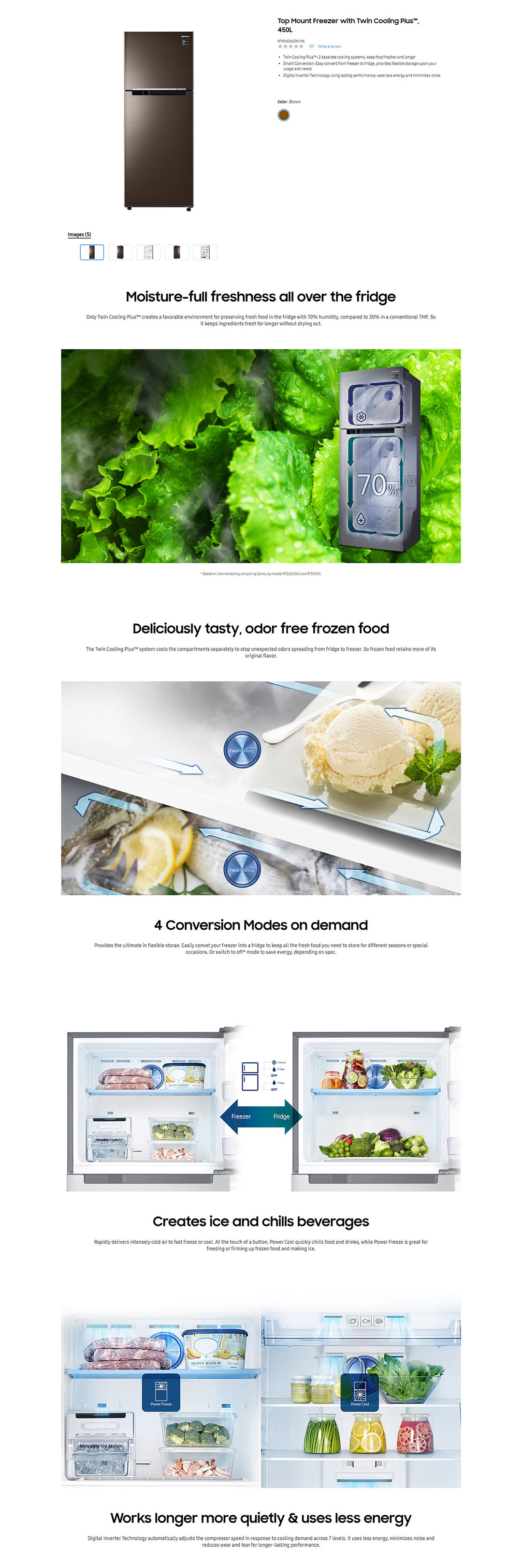 SAMSUNG 450L 2 Doors Top Mount Inverter Refrigerator RT35K5062DX/ME | Twin Cooling Plus | Moisture-Full Freshness | 5 Conversion Modes | Refrigerator with 1 Year General and 10 Year Compressor Warranty