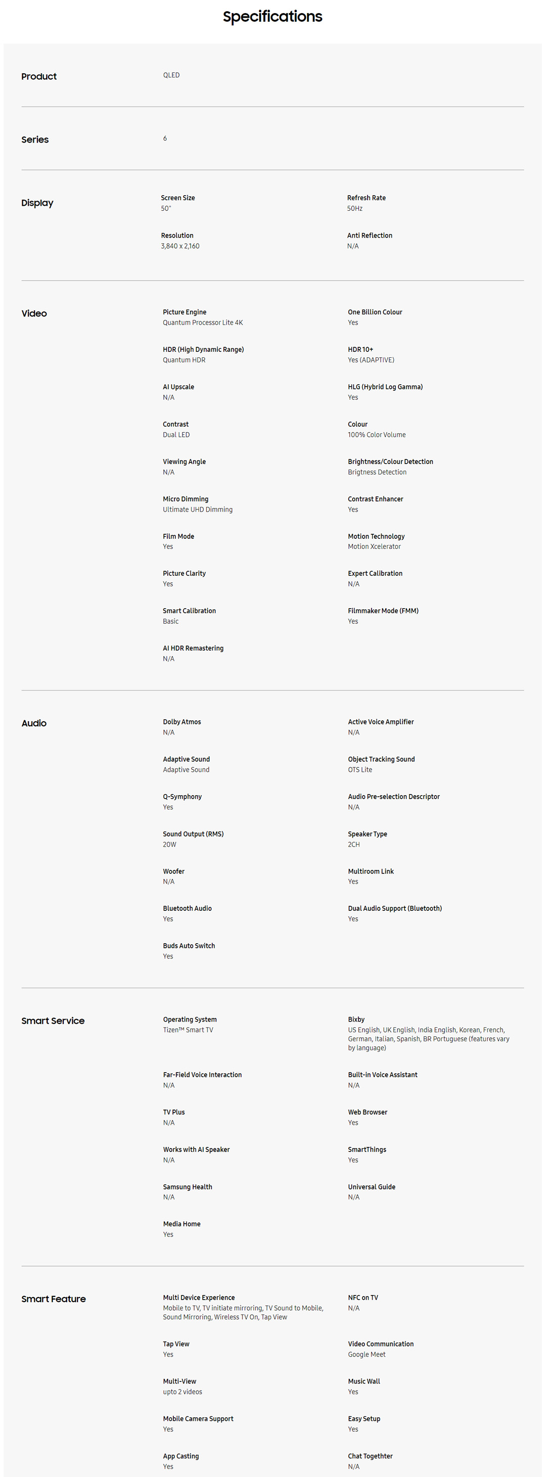 SAMSUNG 50" 4K UHD Smart QLED TV QA50Q60CAKXXM | Quantum HDR | AirSlim | Smart Hub | WiFi Direct | Smart TV with 2 Year Warranty