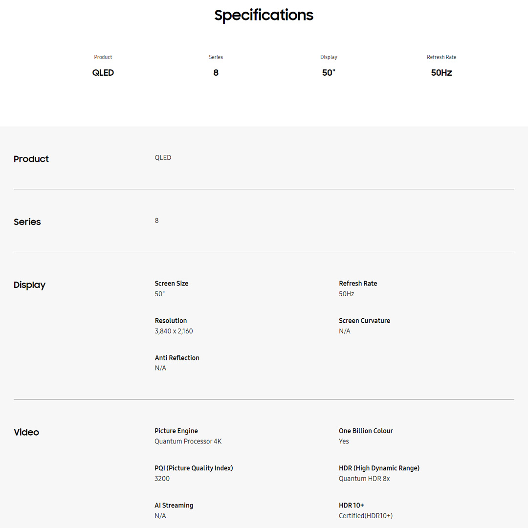 SAMSUNG 50" 4K UHD Smart QLED TV QA50Q80BAKXXM | USB | WiFi | HDMI | Ethernet LAN | Bluetooth 5.2 | Q-Symphony | SmartThings App | Smart TV with 2 Year Warranty