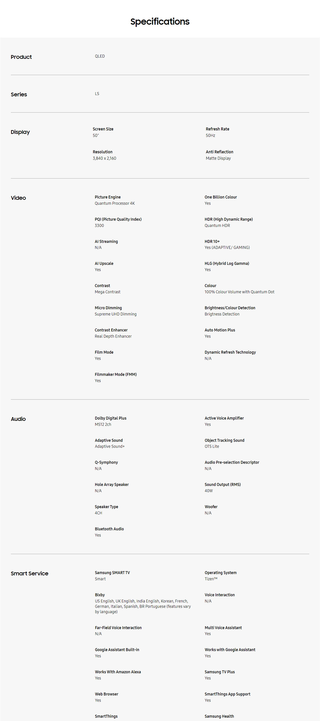 SAMSUNG 50" The Serif 4K Lifestyle Smart QLED TV QA50LS01BAKXXM | 360 All Round Design | Matte Display | Powerful Sound | Detachable Stand | Smart TV with 2 Year Warranty