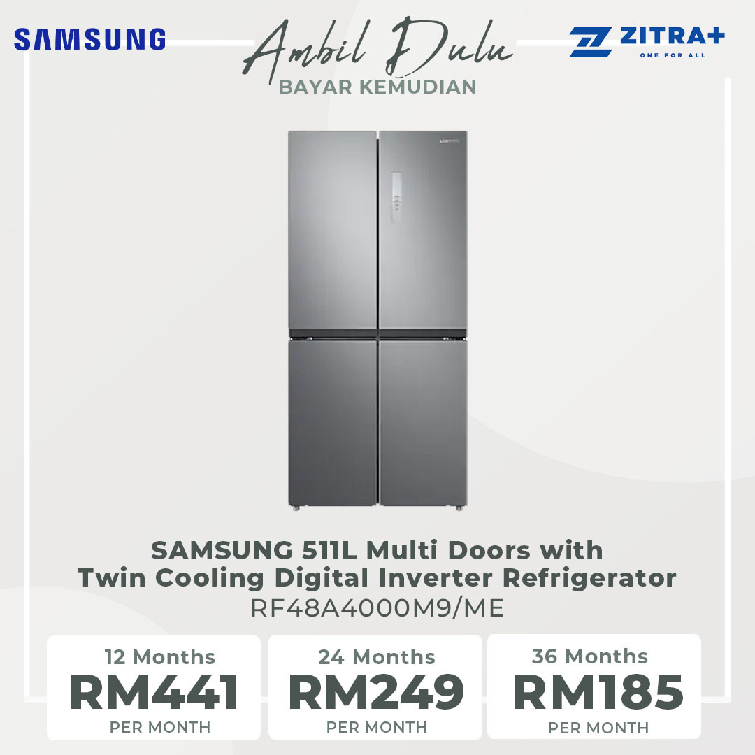 SAMSUNG 511L Multi Doors with Twin Cooling Digital Inverter Refrigerator RF48A4000M9/ME | Power Cool | Power Freeze | Movable Ice Maker | No Frost | Door Alarm | Refrigerator with 1 Year Warranty