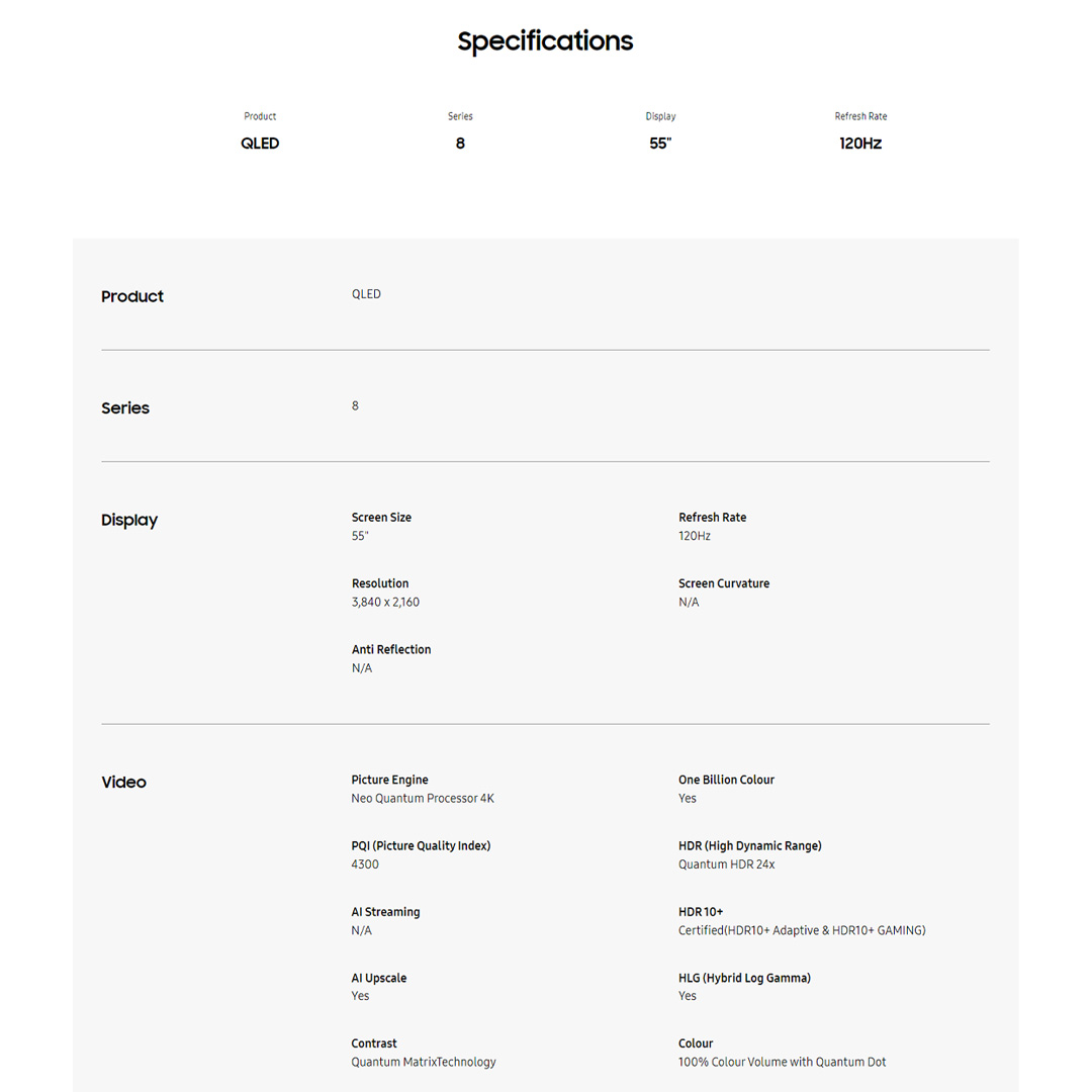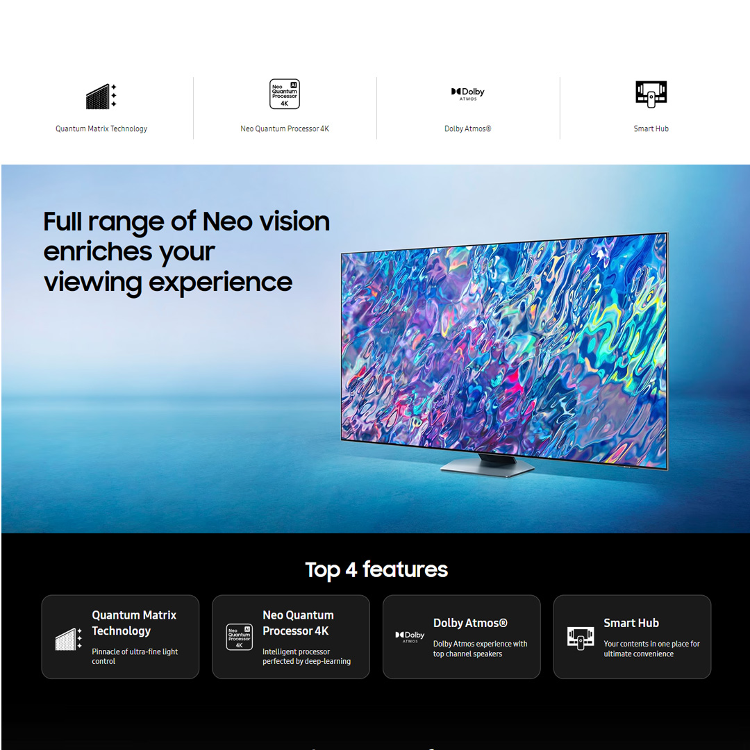 SAMSUNG 55" 4K UHD Smart NEO QLED TV QA55QN85BAKXXM | USB | WiFi | HDMI | Ethernet LAN | Bluetooth 5.2 | Q-Symphony | SmartThings App | Smart TV with 2 Year Warranty