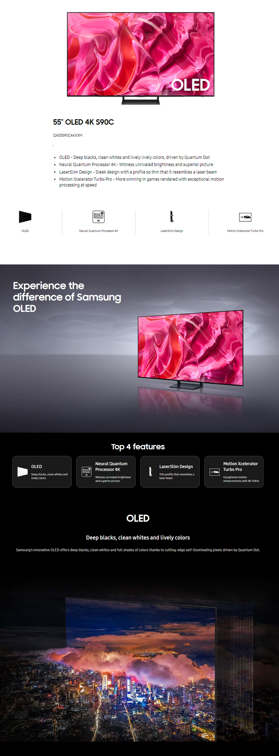 SAMSUNG 55" 4K UHD Smart OLED TV QA55S90CAKXXM | LaserSlim Design | Dolby Atmos | Smart Hub | SmartThings | HDR | HDMI | Smart TV with 2 Year Warranty