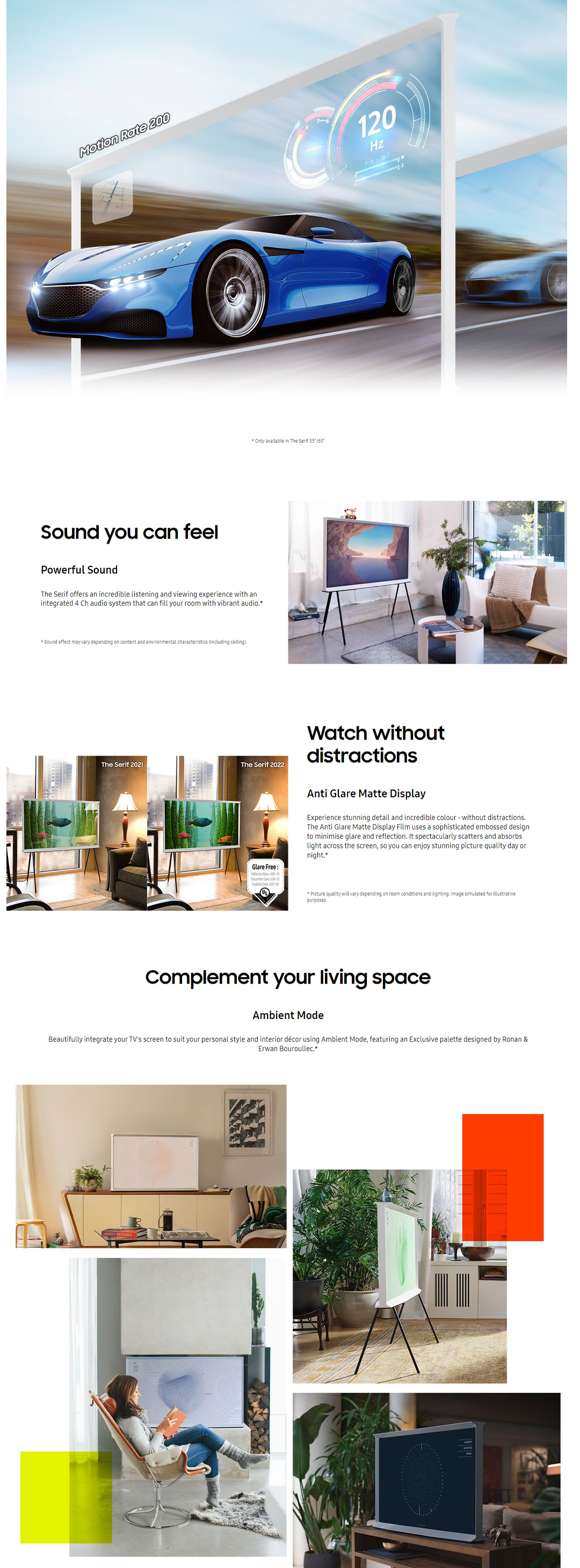 SAMSUNG 55" The Serif 4K Lifestyle Smart QLED TV QA55LS01BAKXXM | 360 All Round Design | Matte Display | Powerful Sound | Detachable Stand | Smart TV with 2 Year Warranty