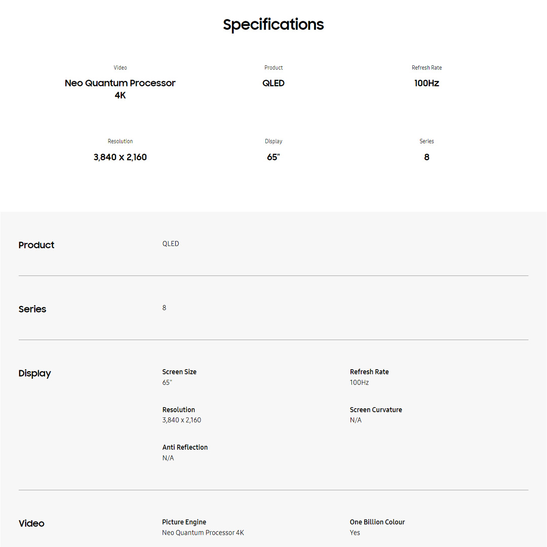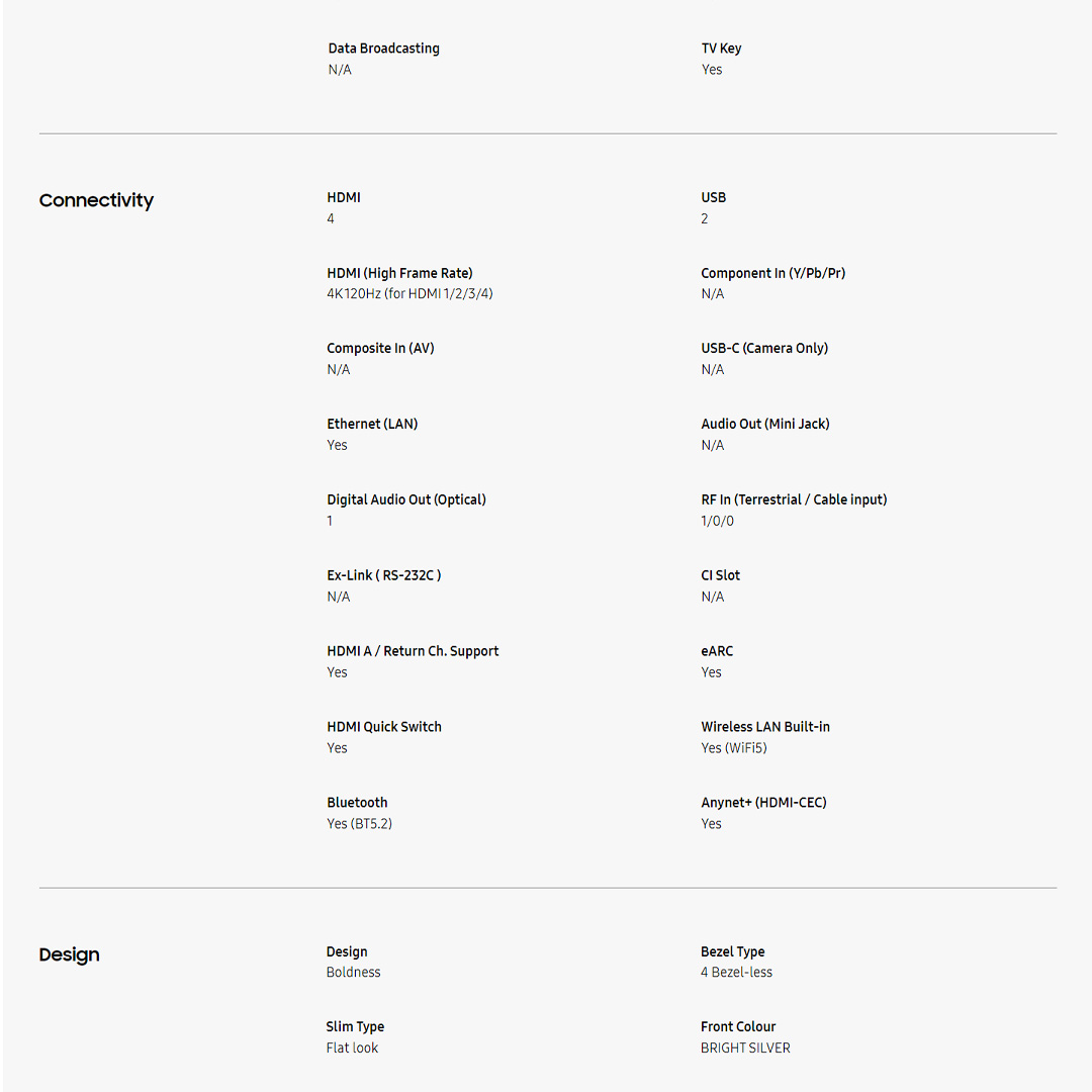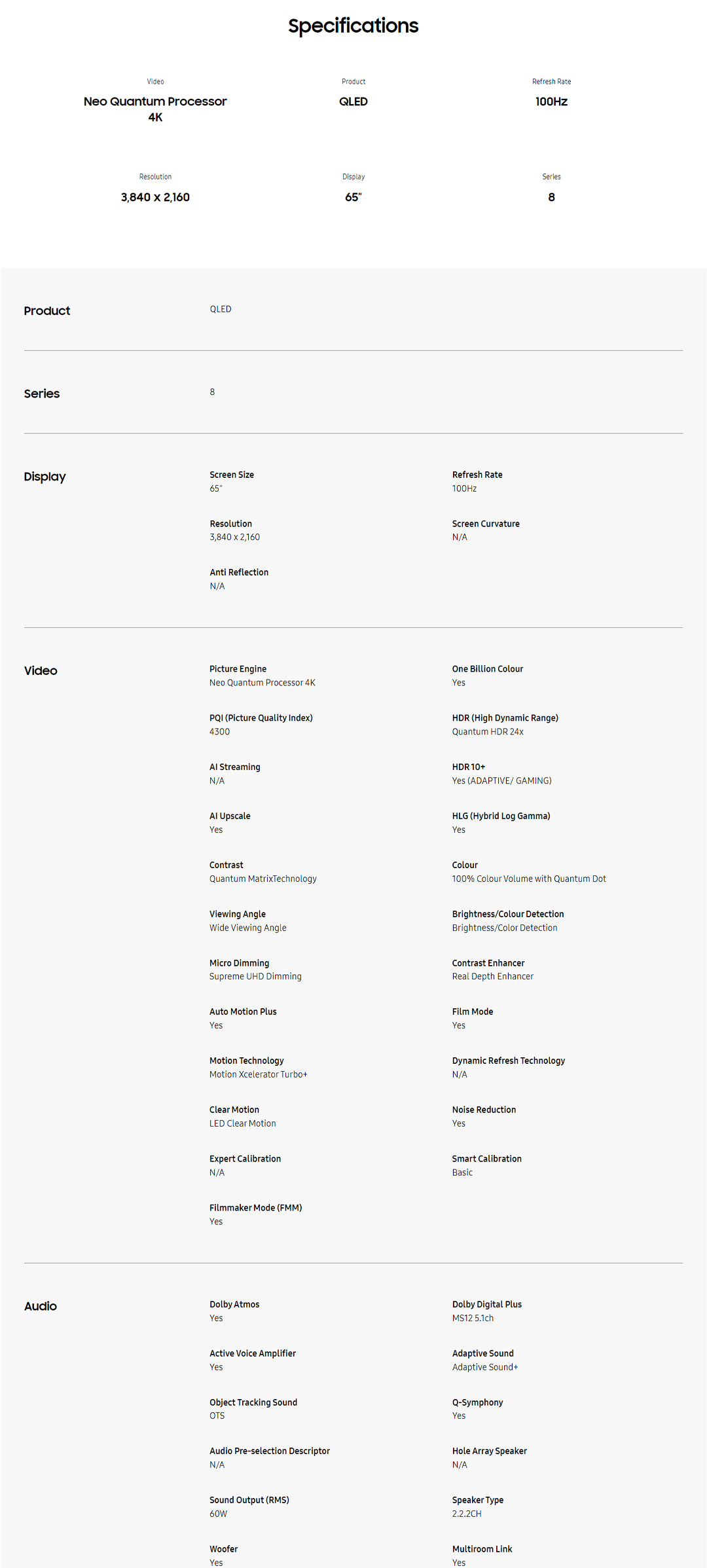 SAMSUNG 65" 4K UHD Smart NEO QLED TV QA65QN85BAKXXM | USB | WiFi | HDMI | Ethernet LAN | Bluetooth 5.2 | Q-Symphony | SmartThings App | Smart TV with 2 Year Warranty