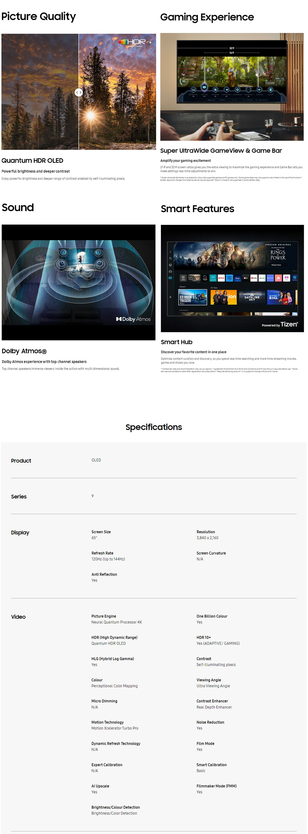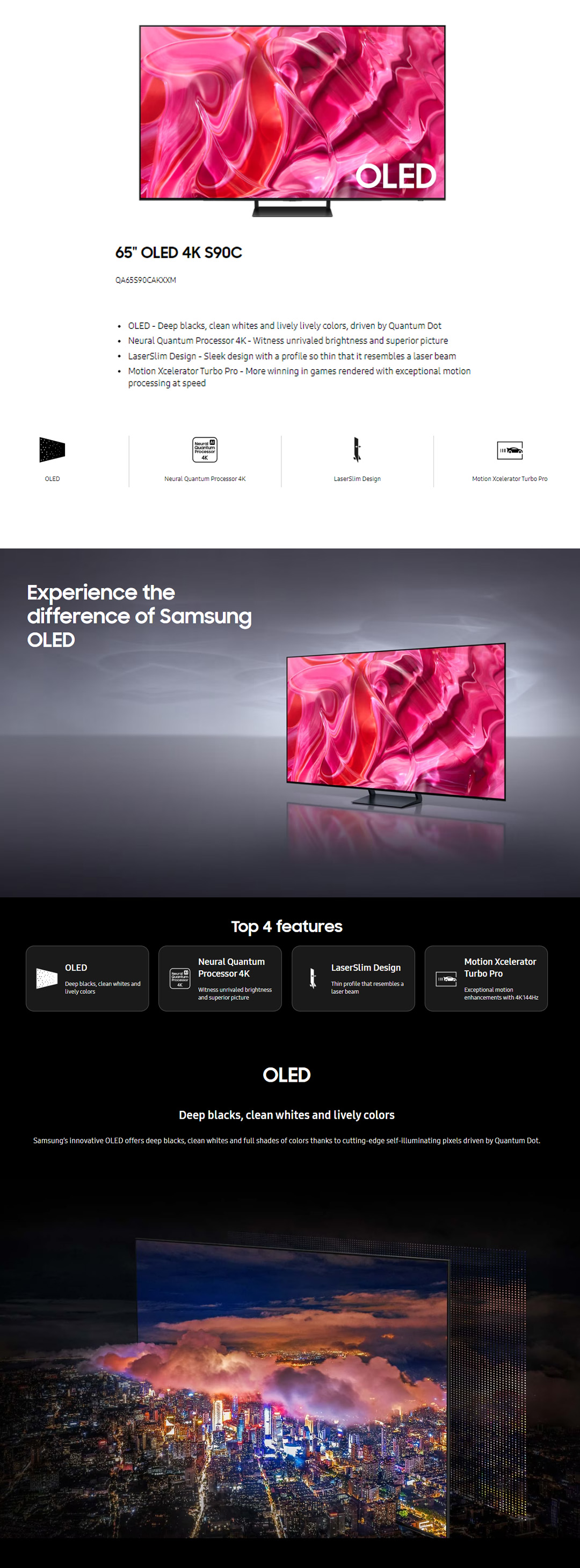 SAMSUNG 65" 4K UHD Smart OLED TV QA65S90CAKXXM | LaserSlim Design | Dolby Atmos | Smart Hub | SmartThings | HDR | HDMI | Smart TV with 2 Year Warranty