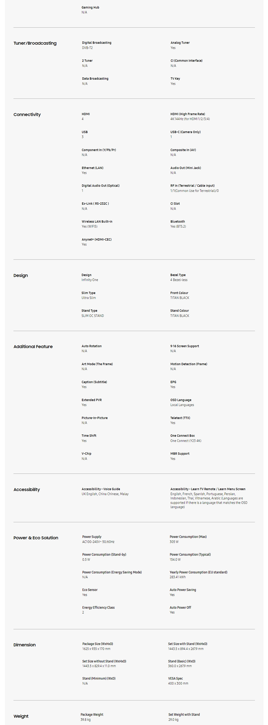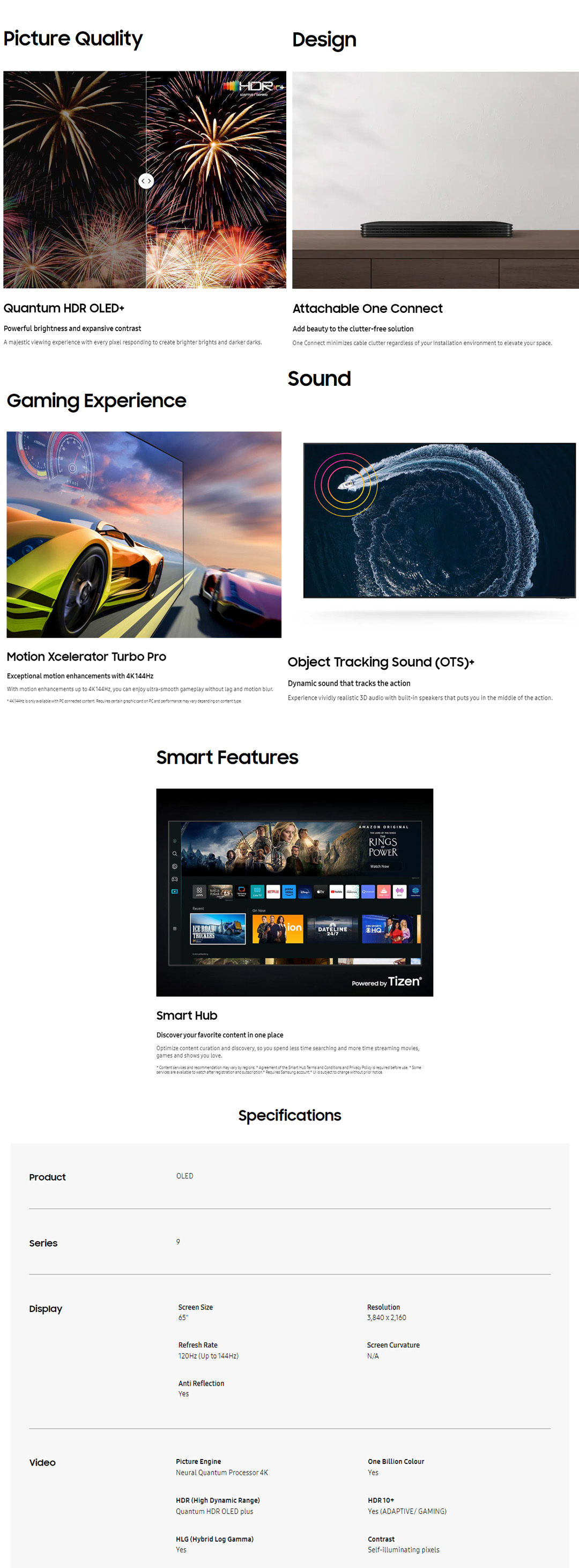 SAMSUNG 65" 4K UHD Smart OLED TV QA65S95CAKXXM | Infinity One Design | Dolby Atmos | Smart Hub | SmartThings | HDR | HDMI | Smart TV with 2 Year Warranty
