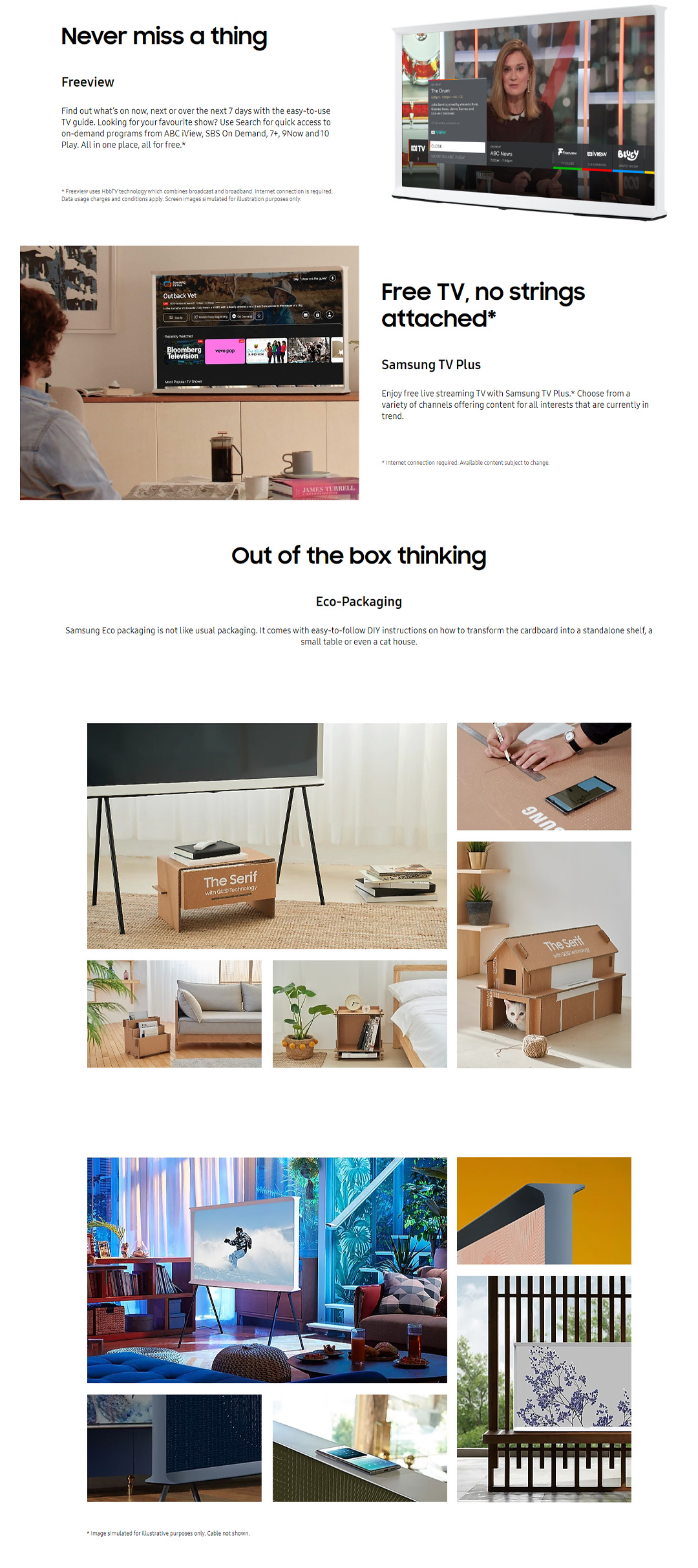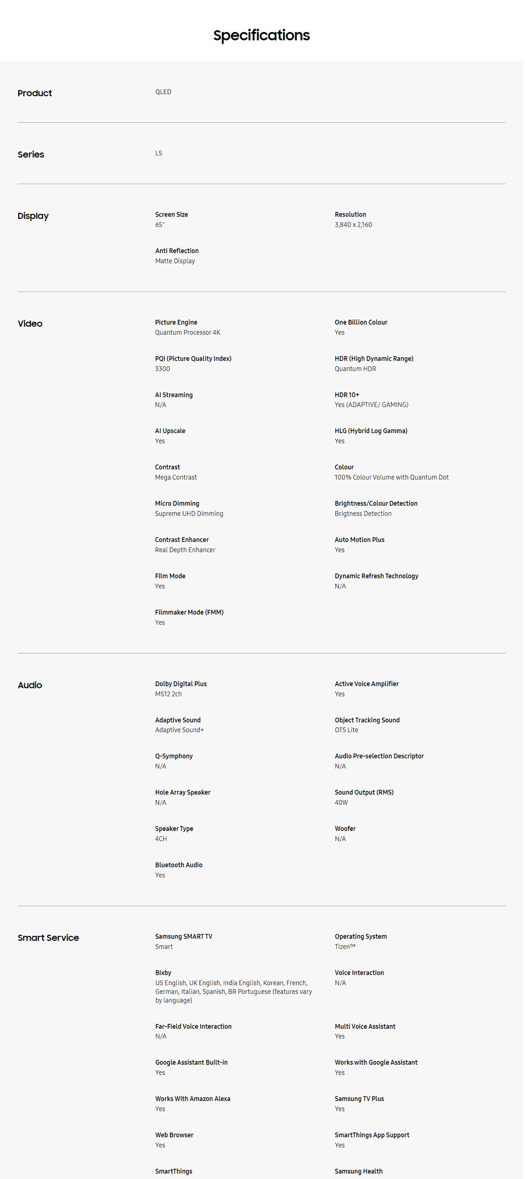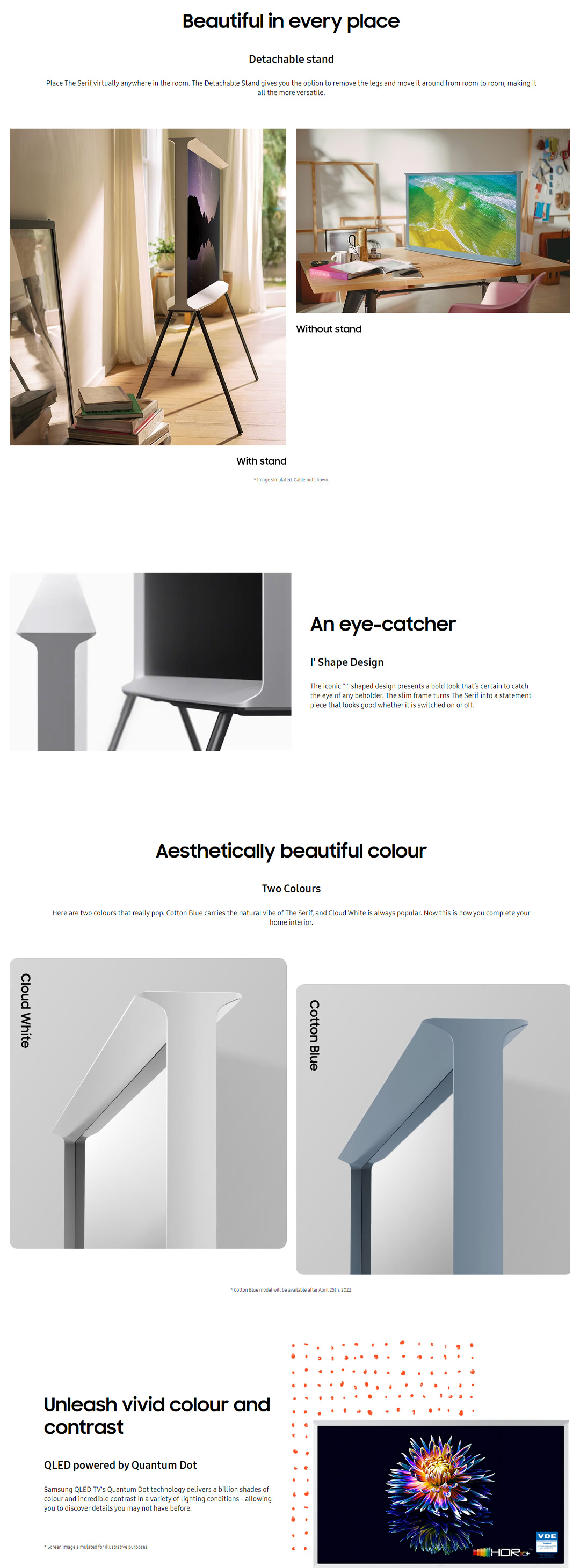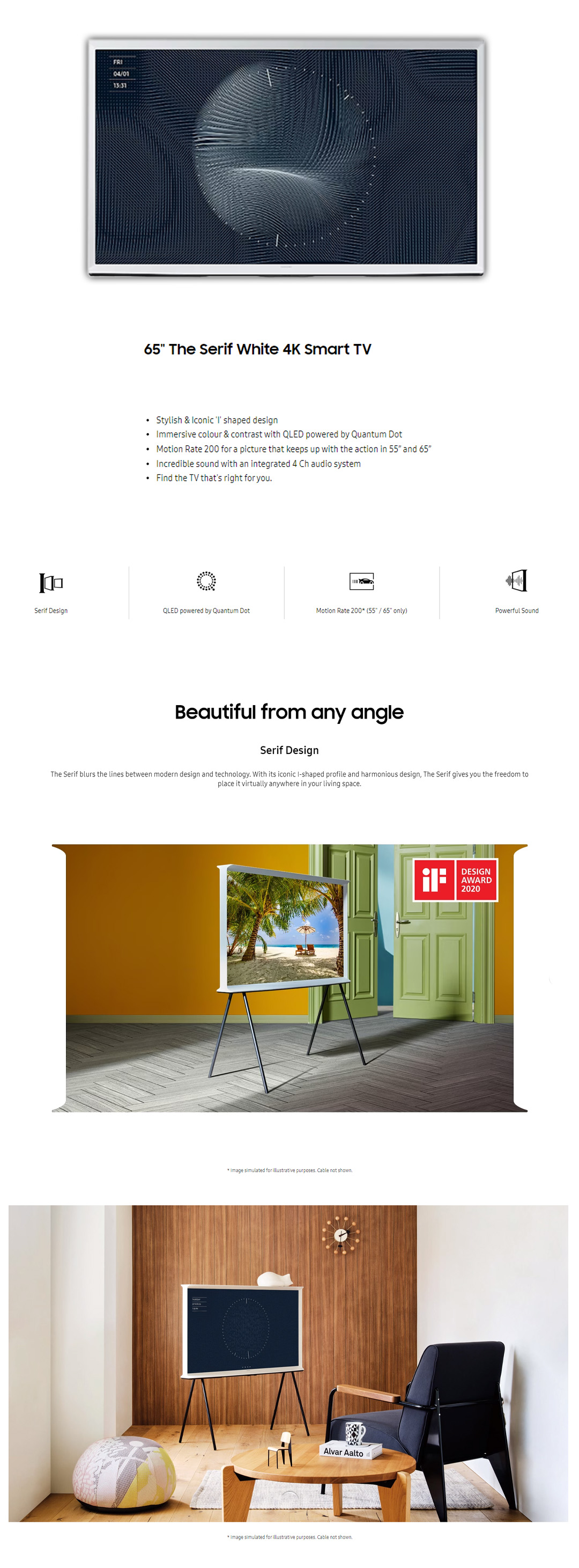 SAMSUNG 65" The Serif 4K Lifestyle Smart QLED TV QA65LS01BAKXXM | 360 All Round Design | Matte Display | Powerful Sound | Detachable Stand | Smart TV with 2 Year Warranty