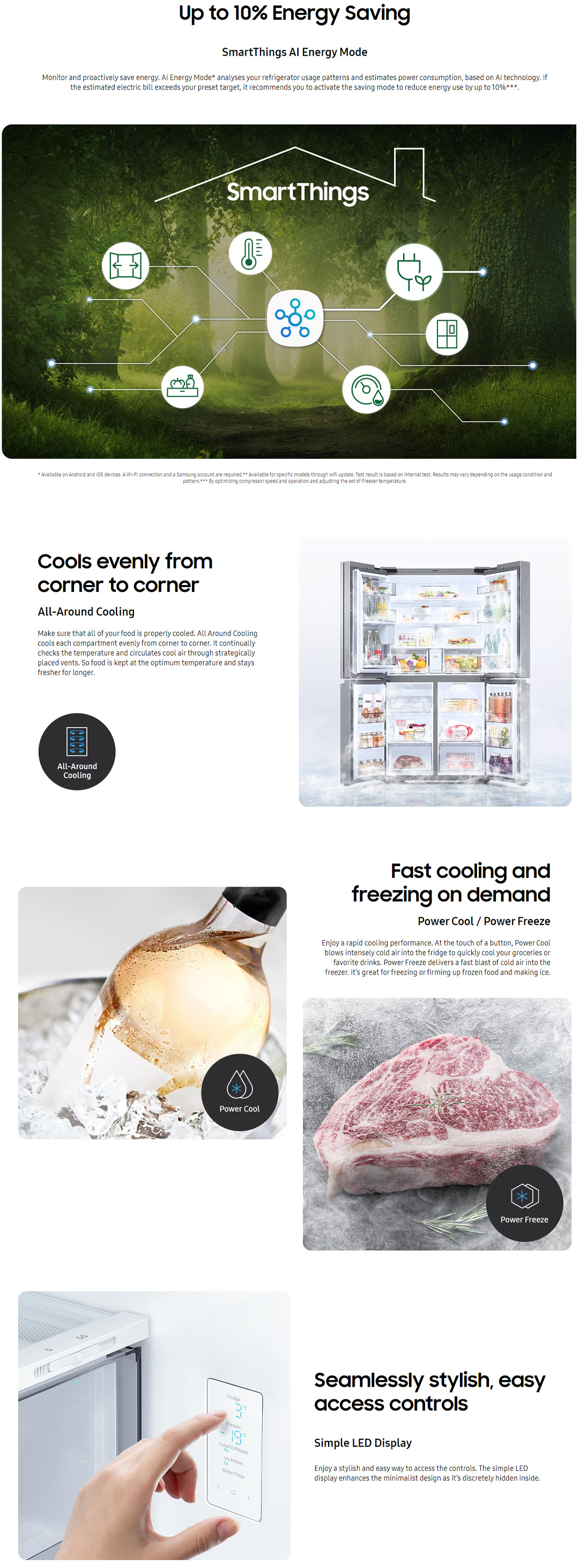 SAMSUNG 667L Multi Doors Bespoke Digital Inverter Refrigerator with All Around Cooling RF59CB0T08A/ME | Power Freeze | Power Cool | All-Around Cooling | Deodorizer | Humidity Control | Refrigerator with 1 Year Warranty
