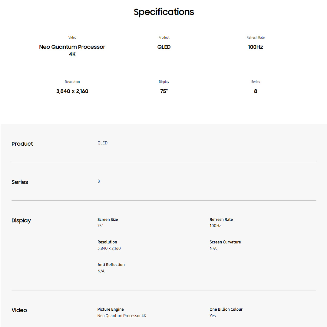 SAMSUNG 75" 4K UHD Smart NEO QLED TV QA75QN85BAKXXM | USB | WiFi | HDMI | Ethernet LAN | Bluetooth 5.2 | Q-Symphony | SmartThings App | Smart TV with 2 Year Warranty