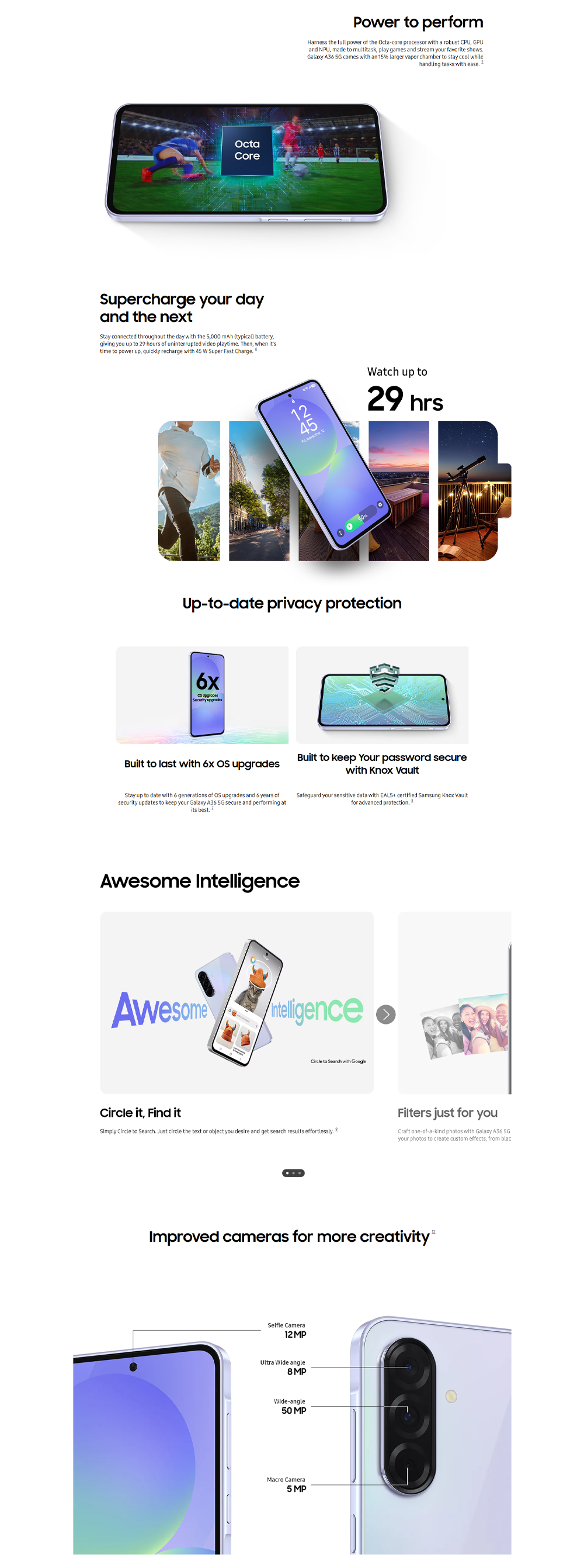 SAMSUNG Galaxy A36 5G 12GB+256GB | Qualcomm SM6475-AB Snapdragon 6 Gen 3 (4 nm) | 6.7 inches, Super AMOLED | 50MP Main Camera | Li-Po 5000 mAh