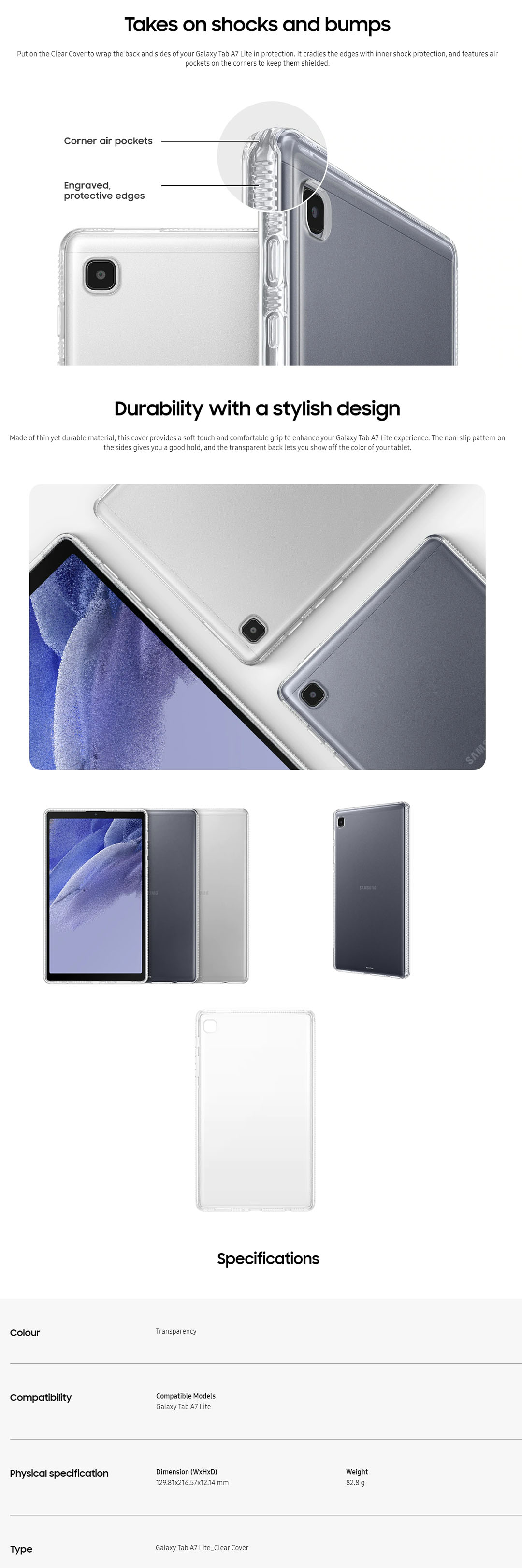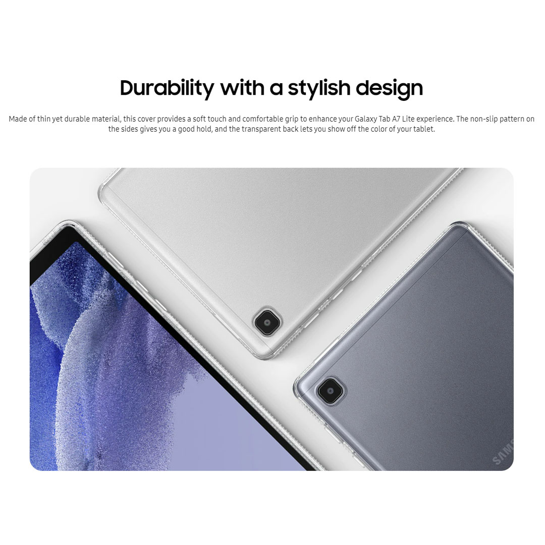 SAMSUNG Galaxy Tab A7 Lite Clear Cover Transparent EF-QT220TTEGWW | Stylishly See-through | Shocks and Bumps Protection | Soft Touch and Comfortable Grip |
