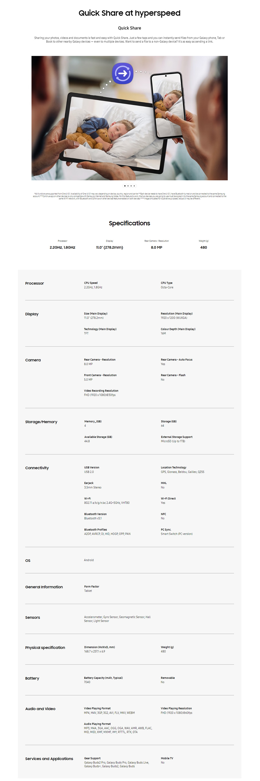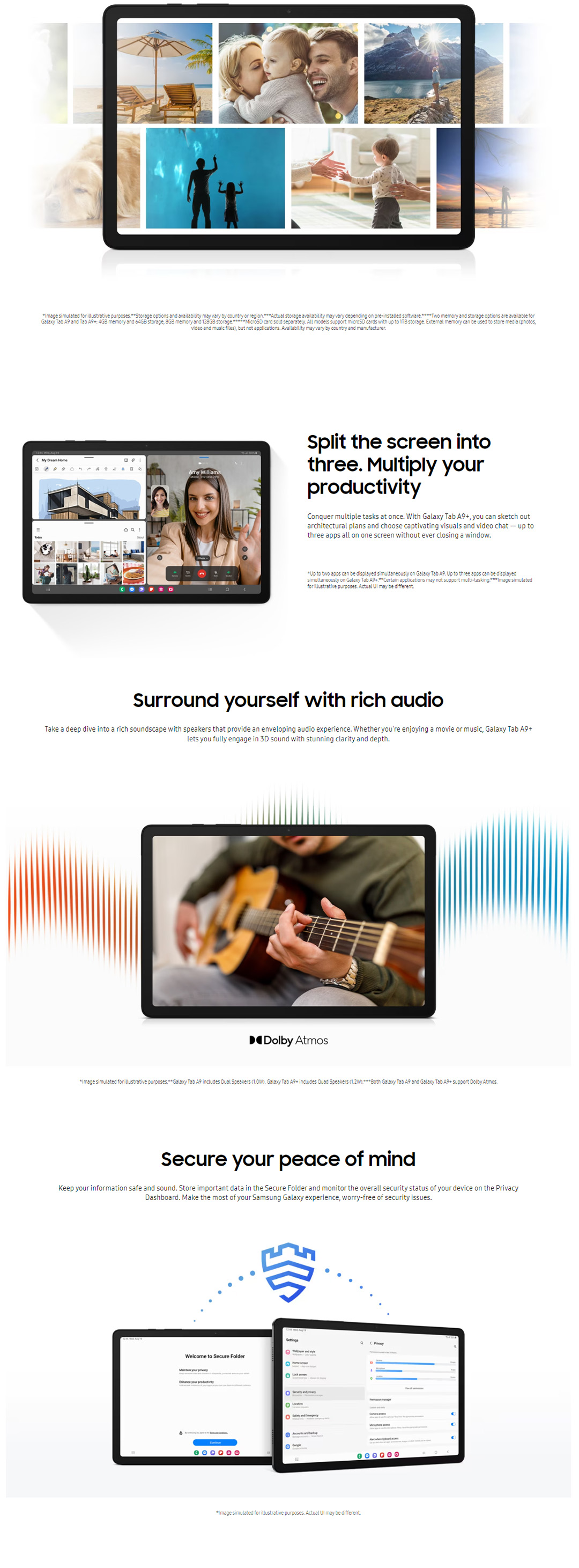 SAMSUNG Galaxy Tab A9+ Wi-Fi 4GB+64GB | 11.0 Display | 8MP Main Camera | 7040mAh Battery | Multi-Tasking | Dolby Atmos | Tablet with 1 Year Warranty